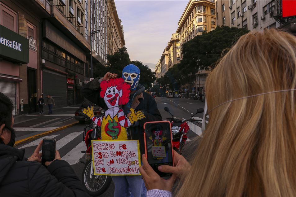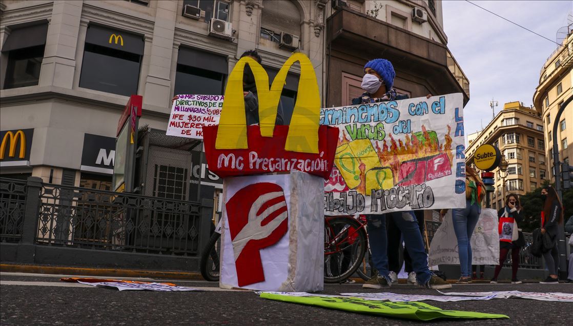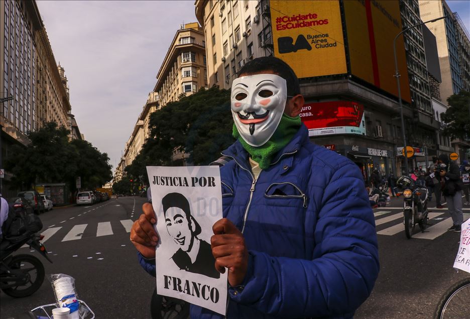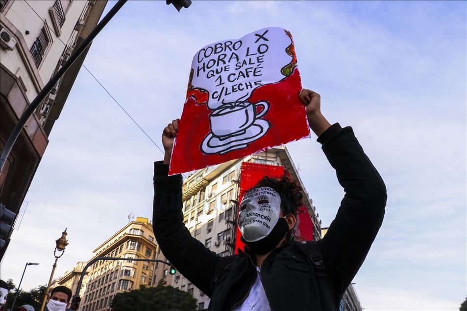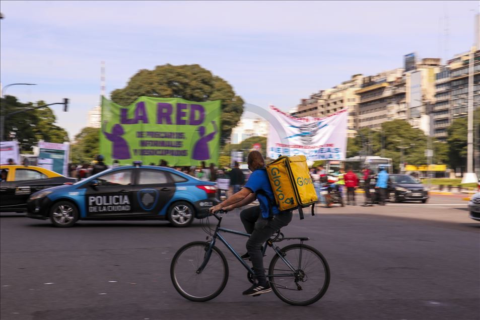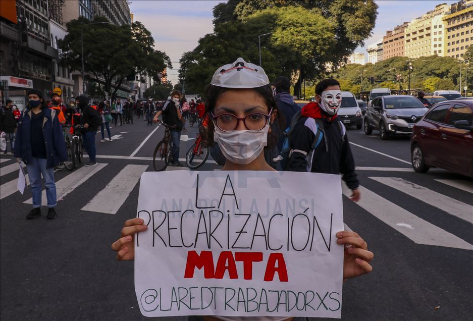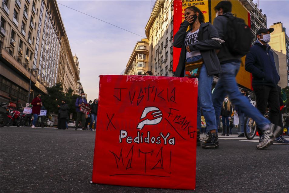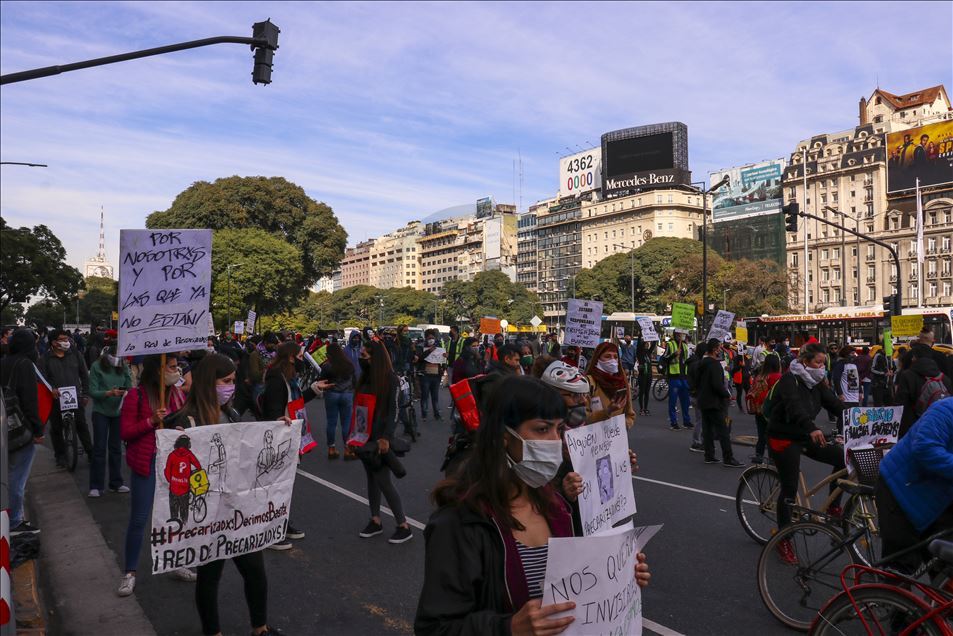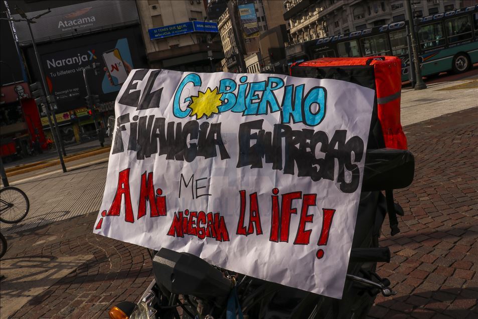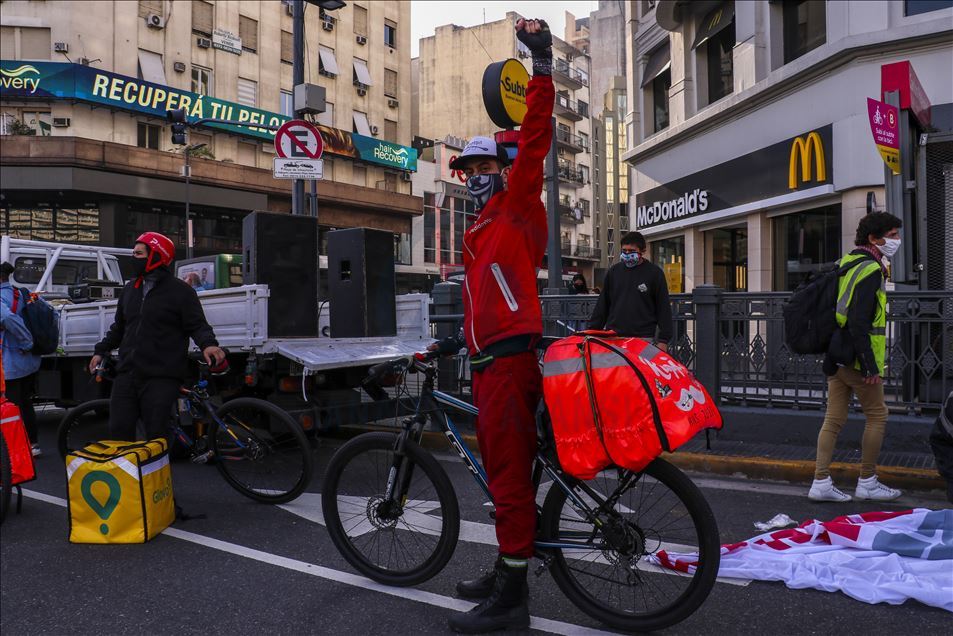 Arjantin'in başkenti Buenos Aires'te, mobil sipariş uygulamaları için çalışan kuryeler, yeni tip koronavirüs (Kovid-19) salgınıyla mücadele kapsamında uygulanan karantinaya rağmen gösteri düzenledi.