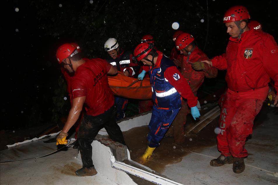Artvin'in Hopa ilçesinde sağanak sonrası meydana gelen sel ve heyelan sonucu yıkılan evlerde sivil savunma ve AKUT ekipleri arama kurtarma çalışmalarını sürdürdü. Enkaz altından çıkarılan yaşamını yitiren kişilerin cesetleri ekip tarafından ambulanslara taşındı. (Zekeriya SARIHAN - Anadolu Ajansı)Zekeriya SARIHAN