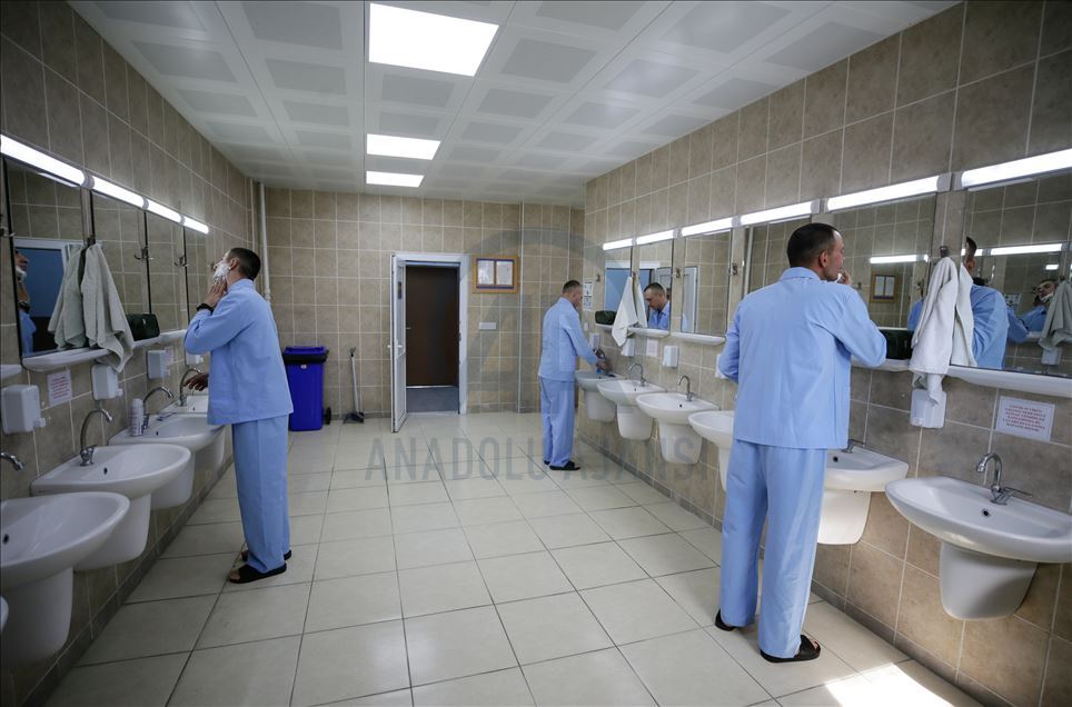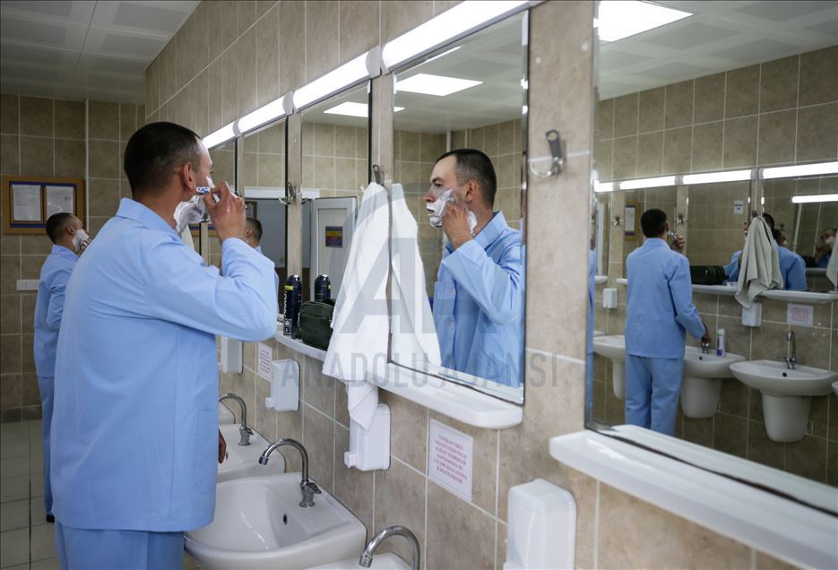 Ege Ordusu Komutanlığının İzmir'in Foça ilçesinde bulunan Ulaştırma ve Terminal Birlik Komutanlığında, yeni tip koronavirüse (Kovid-19) karşı askeri personel ve erlerin korunması, salgının yayılmaması için alınan tedbirler titizlikle uygulanıyor. Komutanlıkta koronavirüs tedbirleri kapsamında koğuşlar, dinlenme tesisleri, yemekhane, çamaşırhane, nizamiye ve eğitim faaliyetleri sırasında alınan önlemler dikkat çekiyor. ( Mahmut Serdar Alakuş - Anadolu Ajansı )Mahmut Serdar Alakuş