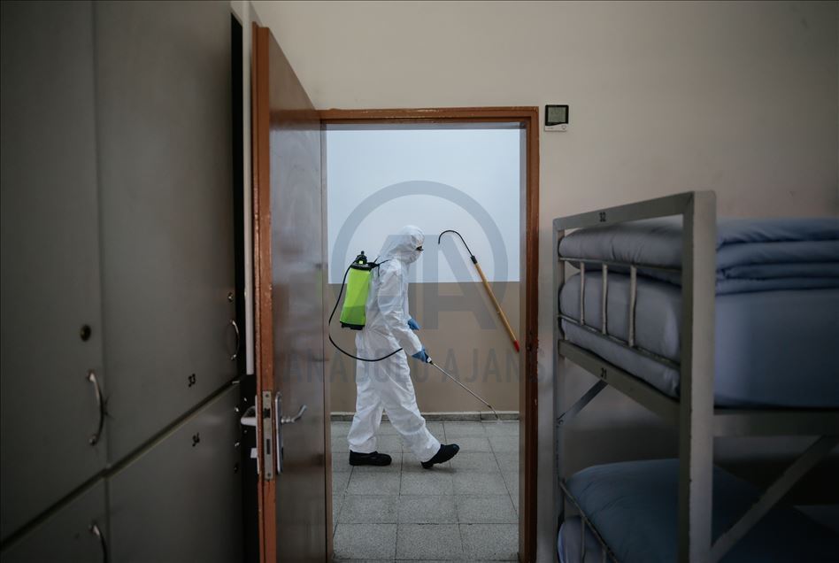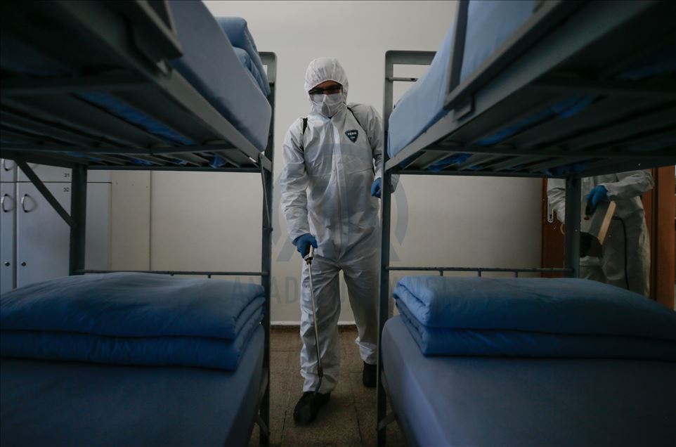 Ege Ordusu Komutanlığının İzmir'in Foça ilçesinde bulunan Ulaştırma ve Terminal Birlik Komutanlığında, yeni tip koronavirüse (Kovid-19) karşı askeri personel ve erlerin korunması, salgının yayılmaması için alınan tedbirler titizlikle uygulanıyor. Komutanlıkta koronavirüs tedbirleri kapsamında yatakhanelerde ve koridorlarda ilaçlama ve dezenfeksiyon işlemleri gerçekleştiriliyor. ( Mahmut Serdar Alakuş - Anadolu Ajansı )Mahmut Serdar Alakuş