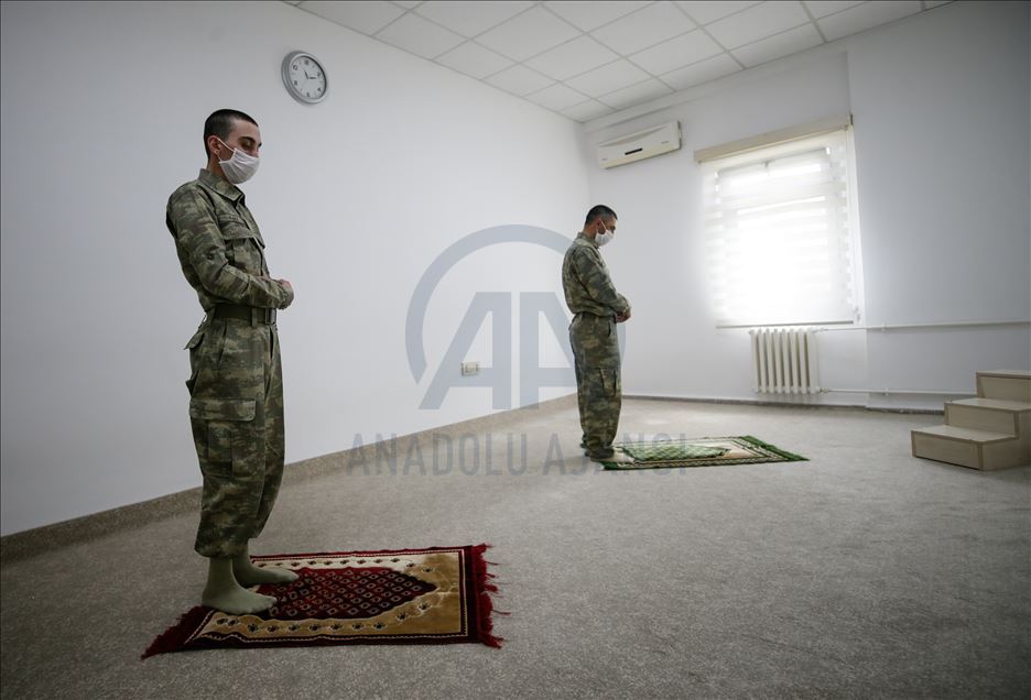 Ege Ordusu Komutanlığının İzmir'in Foça ilçesinde bulunan Ulaştırma ve Terminal Birlik Komutanlığında, yeni tip koronavirüse (Kovid-19) karşı askeri personel ve erlerin korunması, salgının yayılmaması için alınan tedbirler titizlikle uygulanıyor. Komutanlıkta koronavirüs tedbirleri kapsamında Mehmetçiğin kullandığı mescitte sosyal mesafe kuralına uyuluyor. ( Mahmut Serdar Alakuş - Anadolu Ajansı )Mahmut Serdar Alakuş