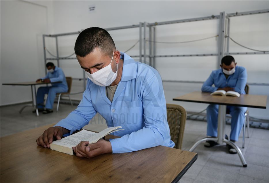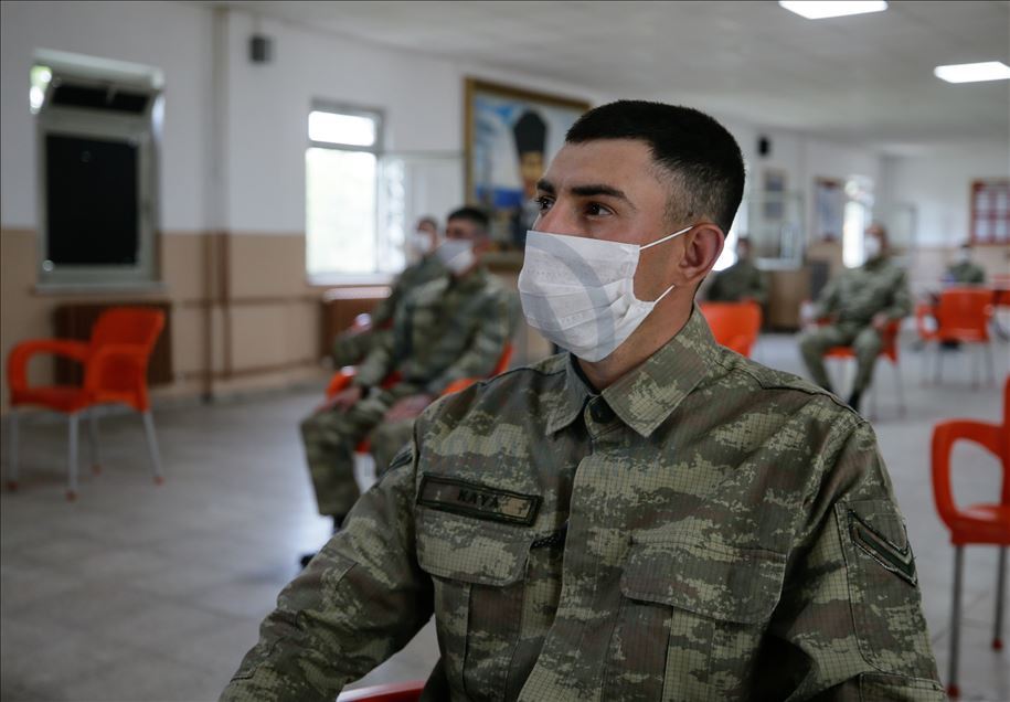 Ege Ordusu Komutanlığının İzmir'in Foça ilçesinde bulunan Ulaştırma ve Terminal Birlik Komutanlığında, yeni tip koronavirüse (Kovid-19) karşı askeri personel ve erlerin korunması, salgının yayılmaması için alınan tedbirler titizlikle uygulanıyor. Komutanlıkta koronavirüs tedbirleri kapsamında birliğe yeni katılan askerler izole bir alanda karantina altında alınıyor. Askerler burada günlerini kitap okuyarak geçiriyor. ( Mahmut Serdar Alakuş - Anadolu Ajansı )Mahmut Serdar Alakuş