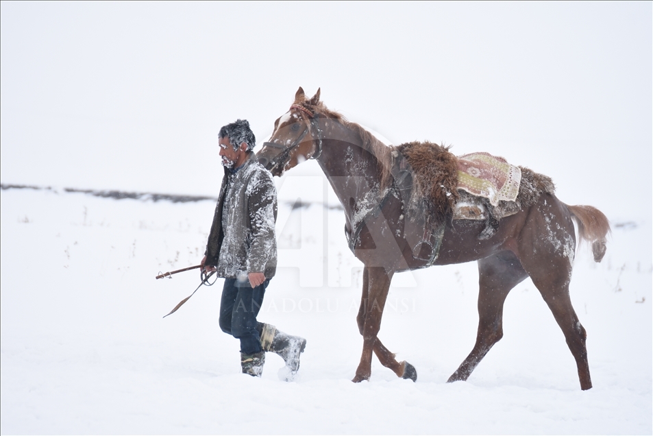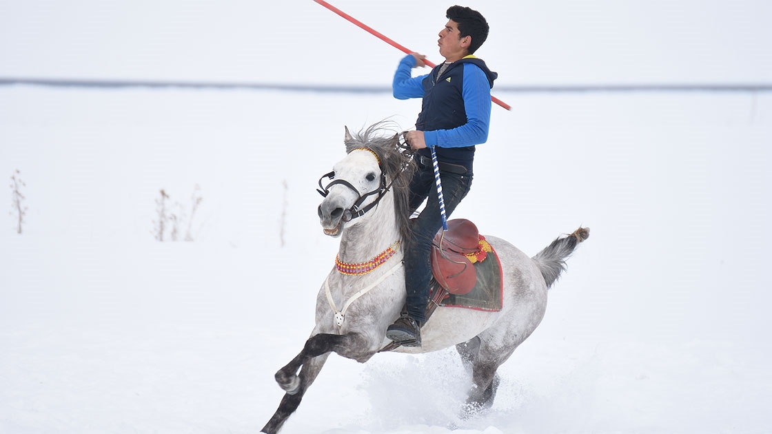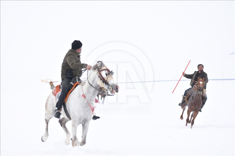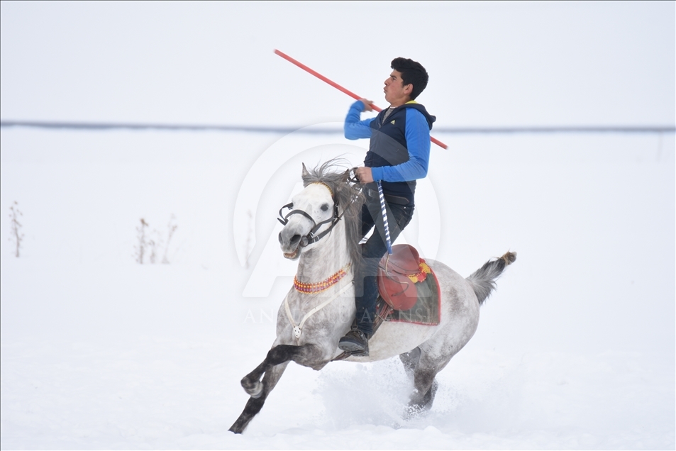 Orta Asya'dan Anadolu'ya uzanan ve Kars'ın Selim ilçesinde kar üzerinde oynanarak yaşatılmaya çalışılan ata sporu cirit, yerli ve yabancı turistleri bölgeye getiren Doğu Ekspresi sayesinde yoğun ilgi görüyor. ( İsmail Kaplan - Anadolu Ajansı )İsmail Kaplan