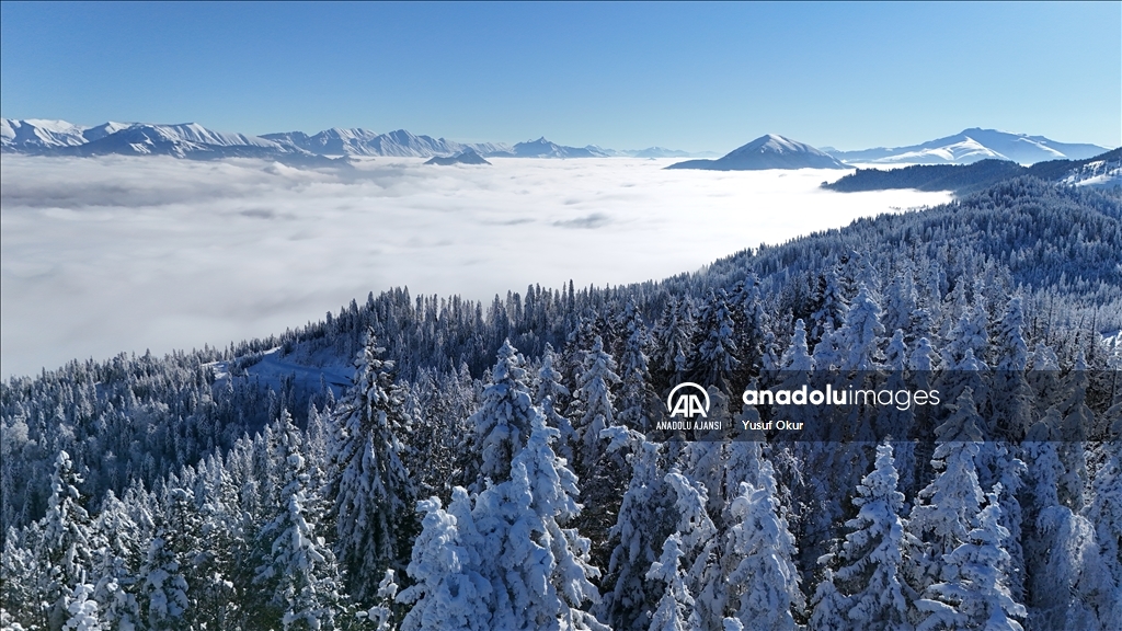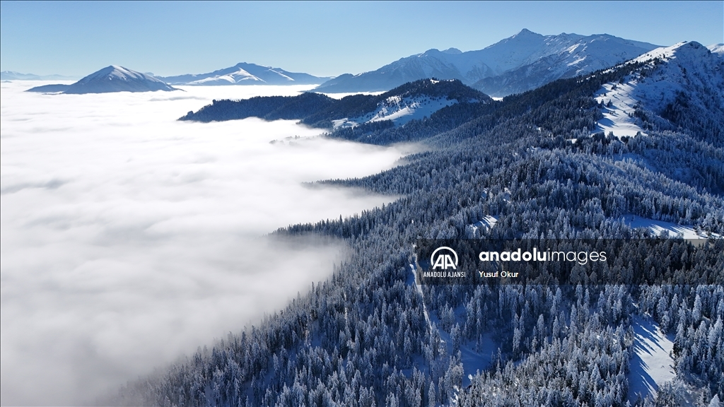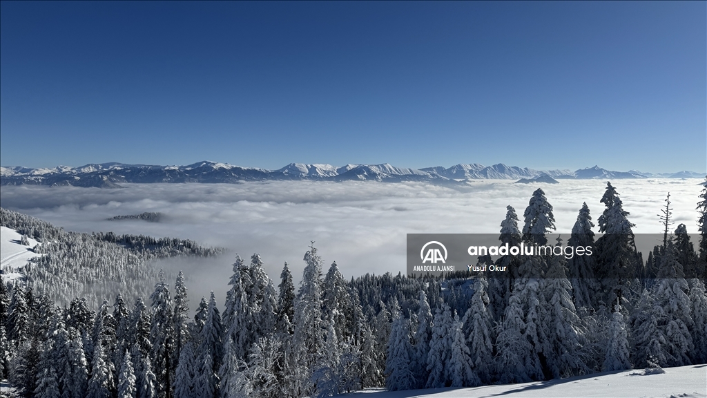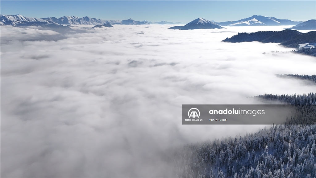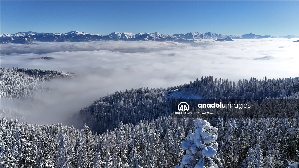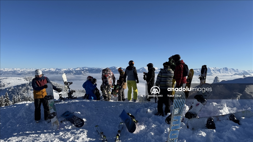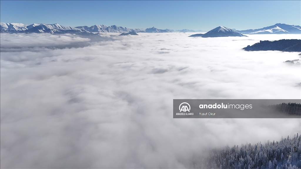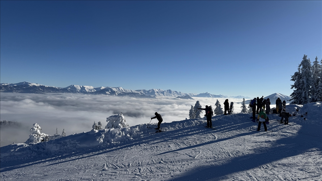 Kayak merkezinin zirvesinin arka yamacındaki vadide oluşan bulut denizi de bölgeye gelenlere görsel şölen sundu.