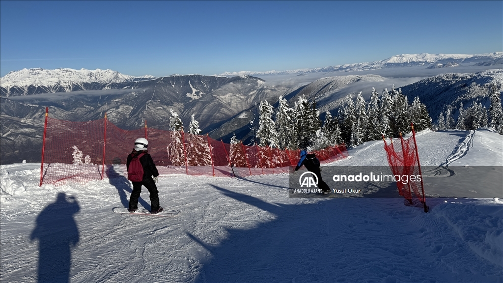 Doğu Karadeniz'in önemli kış turizm merkezlerinden Artvin'deki Atabarı Kayak Merkezi, sezonun açılmasıyla ilk ziyaretçilerini ağırladı.