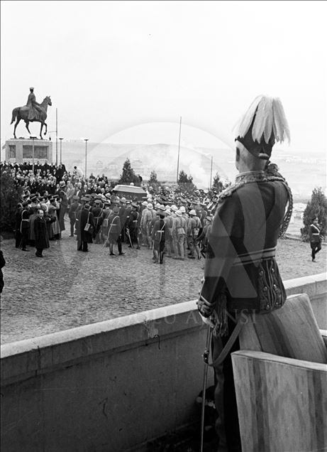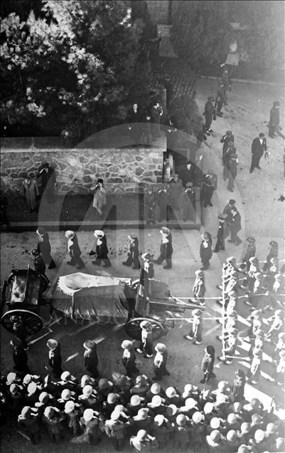 21 Kasım 1938'de Mustafa Kemal Atatürk'ün cenaze korteji Etnoğrafya müzesi bahçesinde. (Arşiv)
