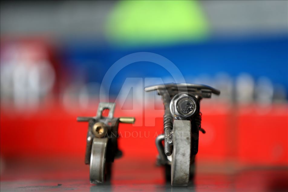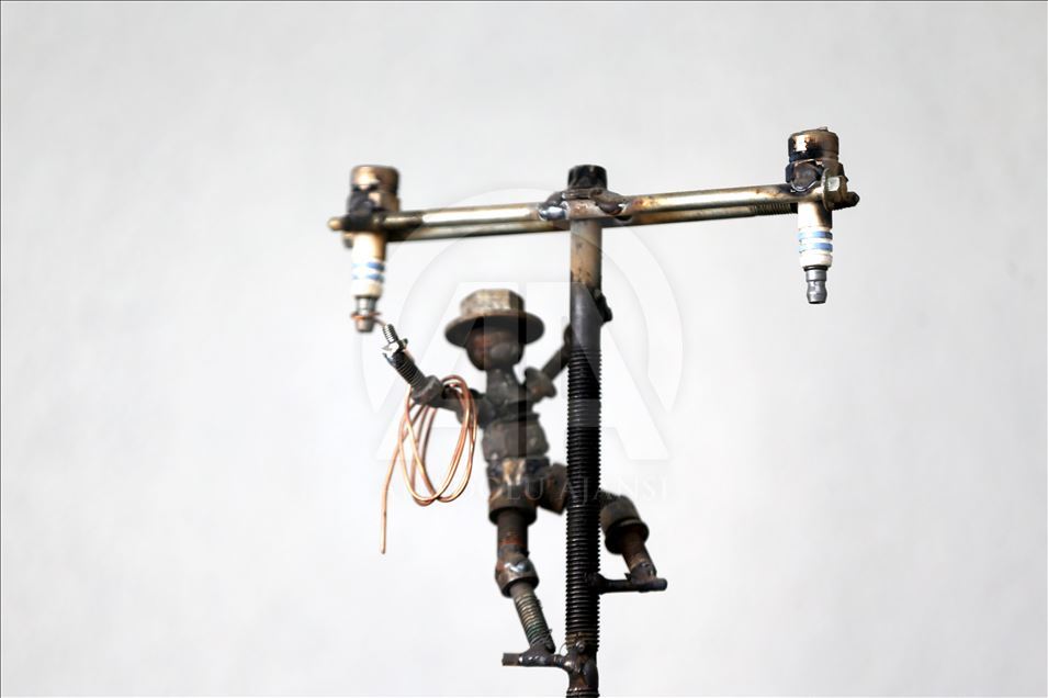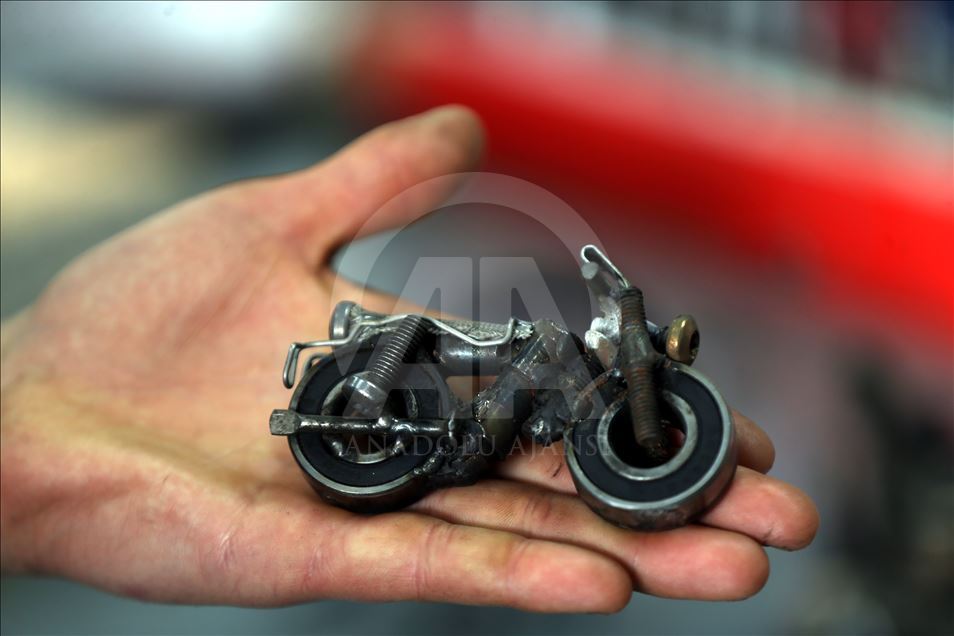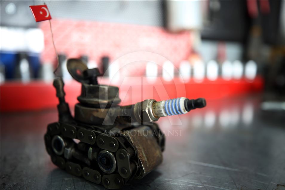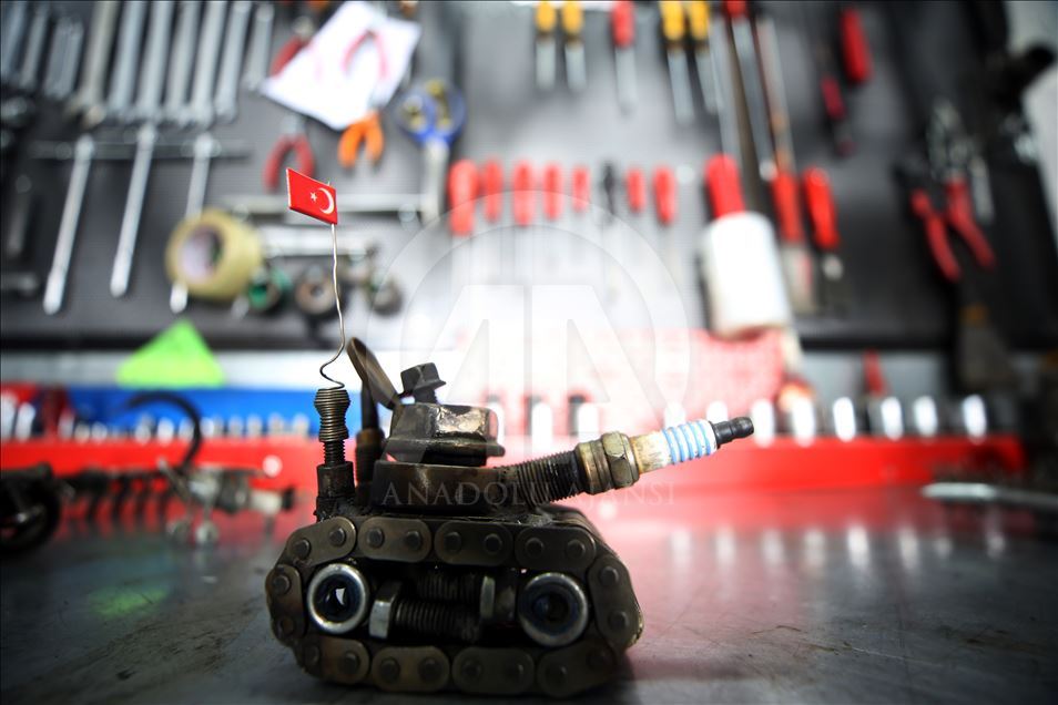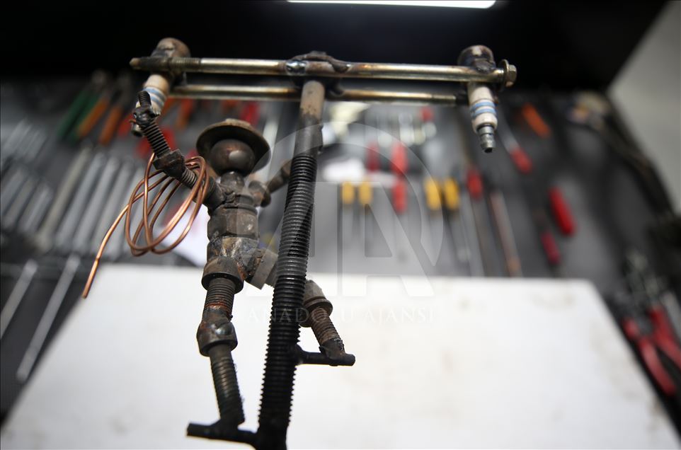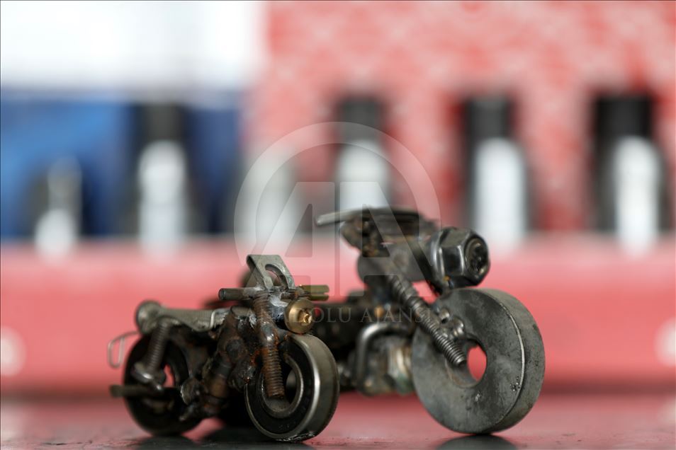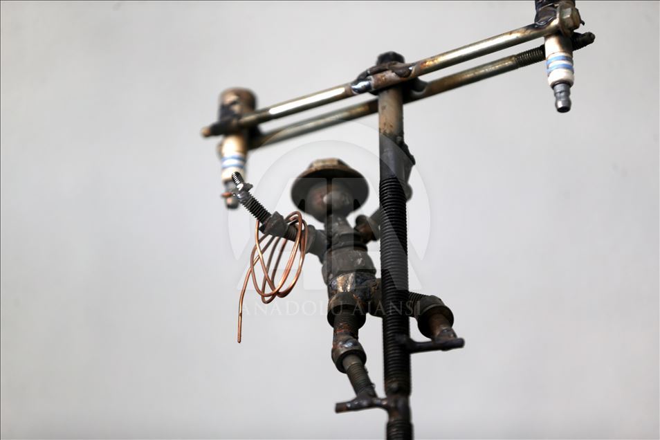 Düzce'de sanayide motor ustası olarak çalışan 46 yaşındaki Murat Çetin, işten arta kalan zamanlarında, araçlardan çıkan buji, somun, cıvata gibi farklı parçalardan, hayal ürünü obje ve figürler elde ediyor. Bu parçaları bir araya getirerek hayal gücünü kullanan Çetin, motosiklet, tank, asker, baykuş ve buna benzer 250 figür ve obje yaptı.