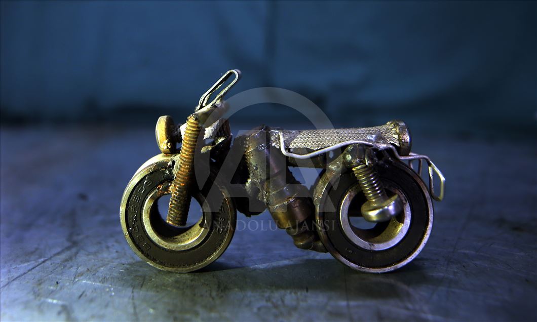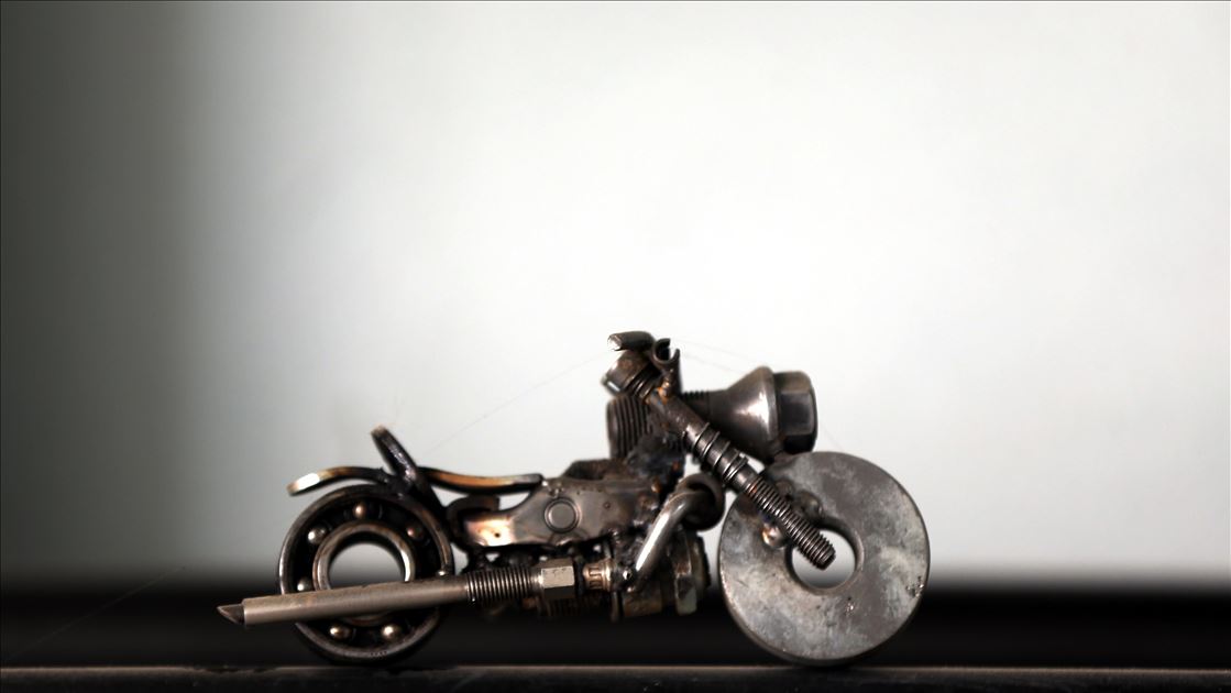 Düzce'de sanayide motor ustası olarak çalışan 46 yaşındaki Murat Çetin, işten arta kalan zamanlarında, araçlardan çıkan buji, somun, cıvata gibi farklı parçalardan, hayal ürünü obje ve figürler elde ediyor. Bu parçaları bir araya getirerek hayal gücünü kullanan Çetin, motosiklet, tank, asker, baykuş ve buna benzer 250 figür ve obje yaptı. ( Ömer Ürer - Anadolu Ajansı )Ömer Ürer