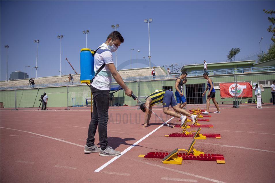 Türkiye Atletizm Federasyonu takviminin yaz sezonundaki ilk pist yarışması, Ankara'da başladı. İlk gün sabah seansında 100 metre seçmeleri ile 18 yaş altı erkekler çekiç atma ve 18 yaş altı kadınlar sırıkla atlama yarışmaları yapıldı. Yeni tip koronavirüs (Kovid-19) önlemleri kapsamında yarışma alanları dezenfekte edildi, görevliler maske taktı. ( Aytaç Ünal - Anadolu Ajansı )Aytaç Ünal