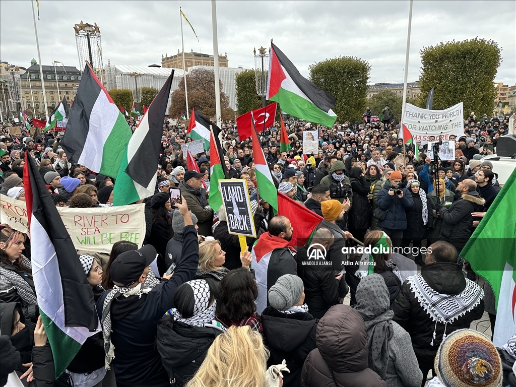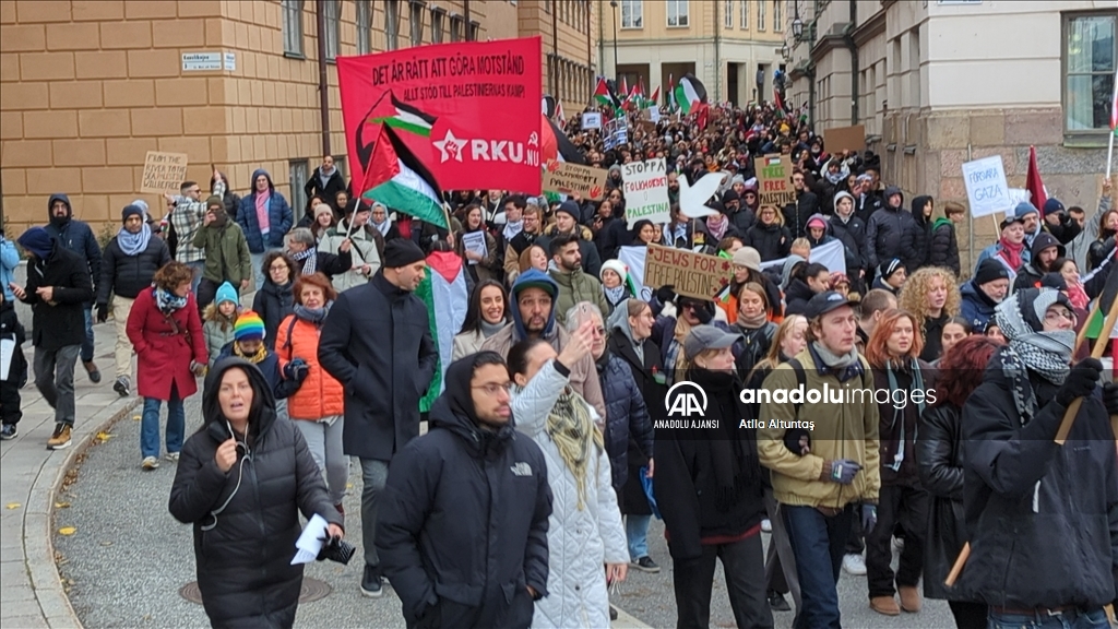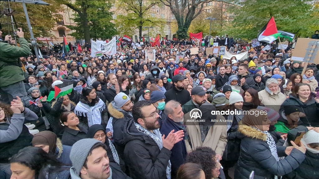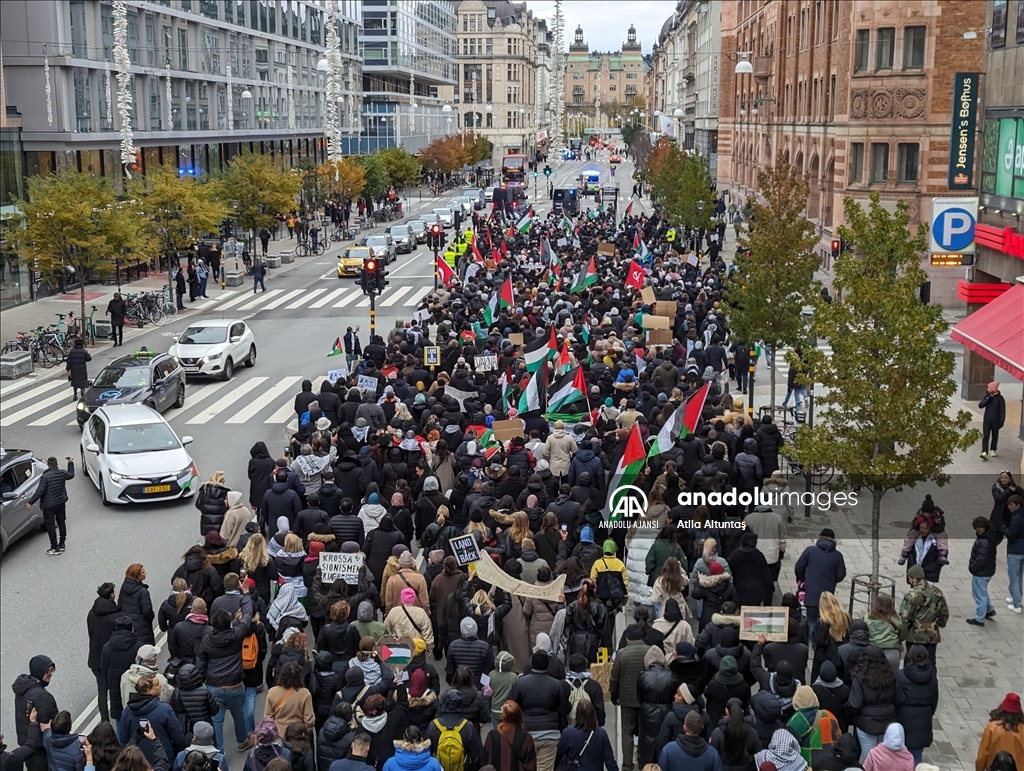 Stockholm'de binlerce kişi Filistin'e destek için yürüdü