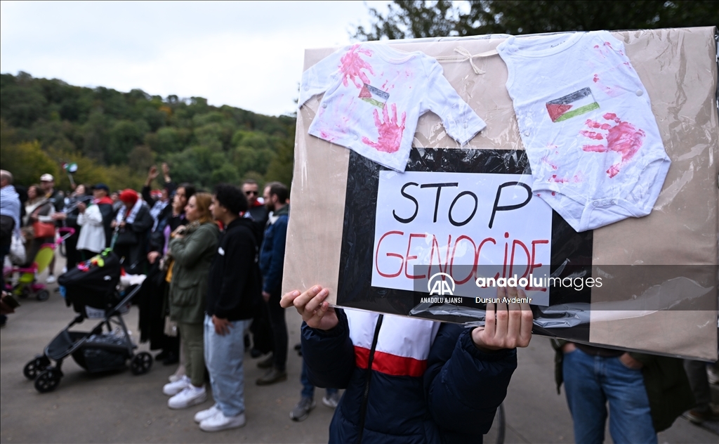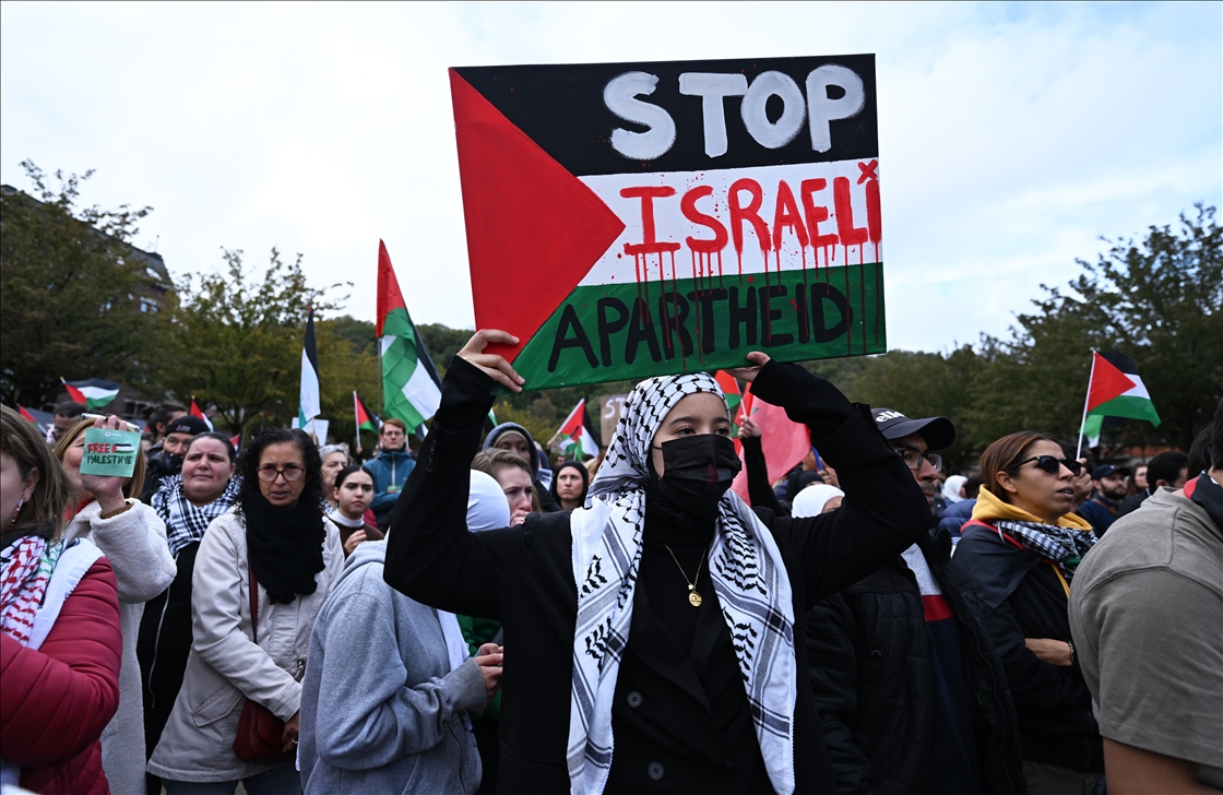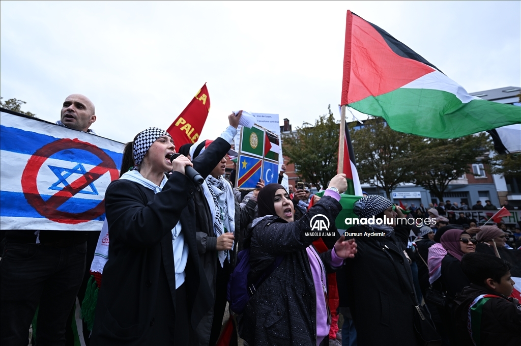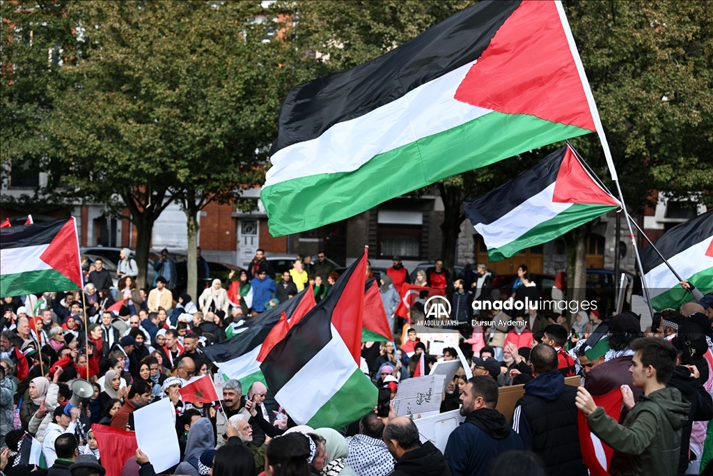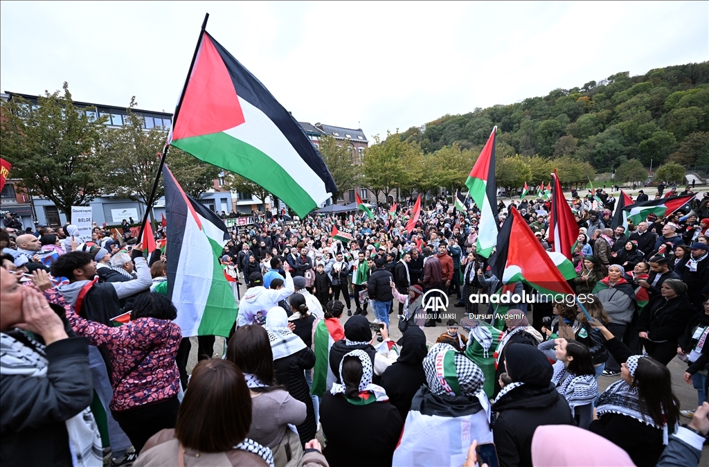 Belçika'nın Liege şehrinde bir araya gelen yüzlerce kişi, İsrail’in Gazze’ye yönelik saldırılarını protesto etti. ( Dursun Aydemir - Anadolu Ajansı )Dursun Aydemir