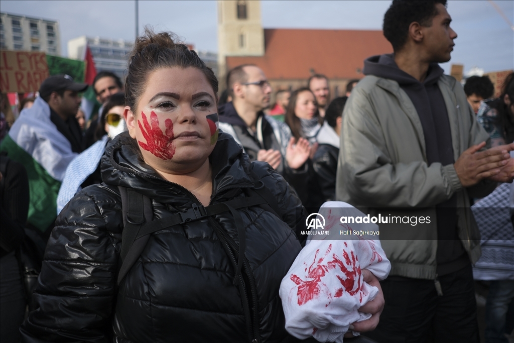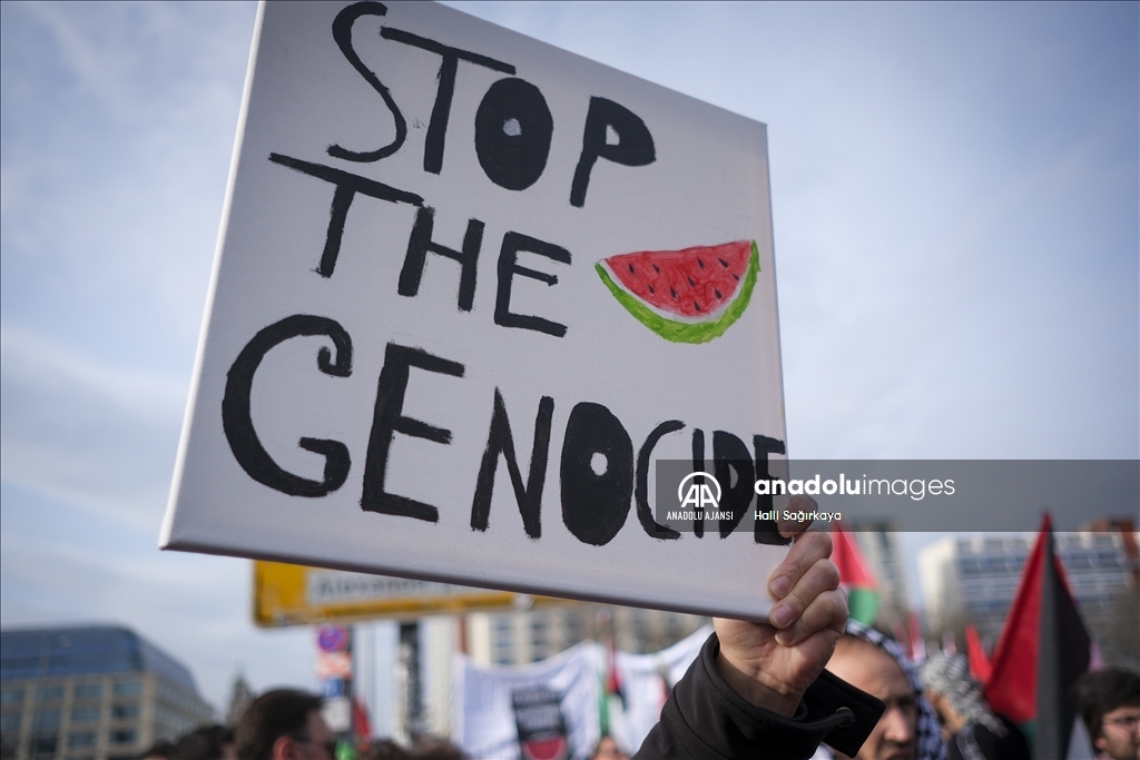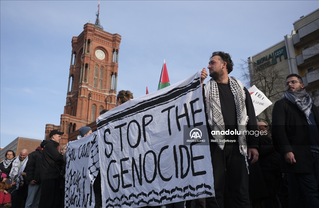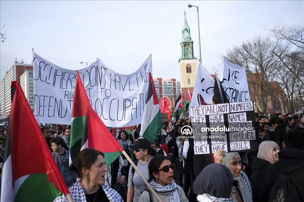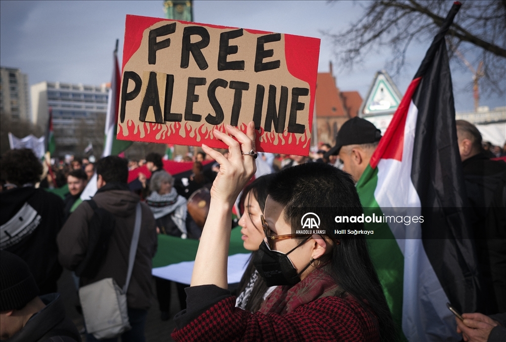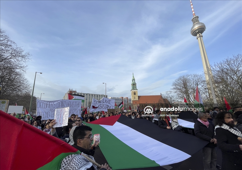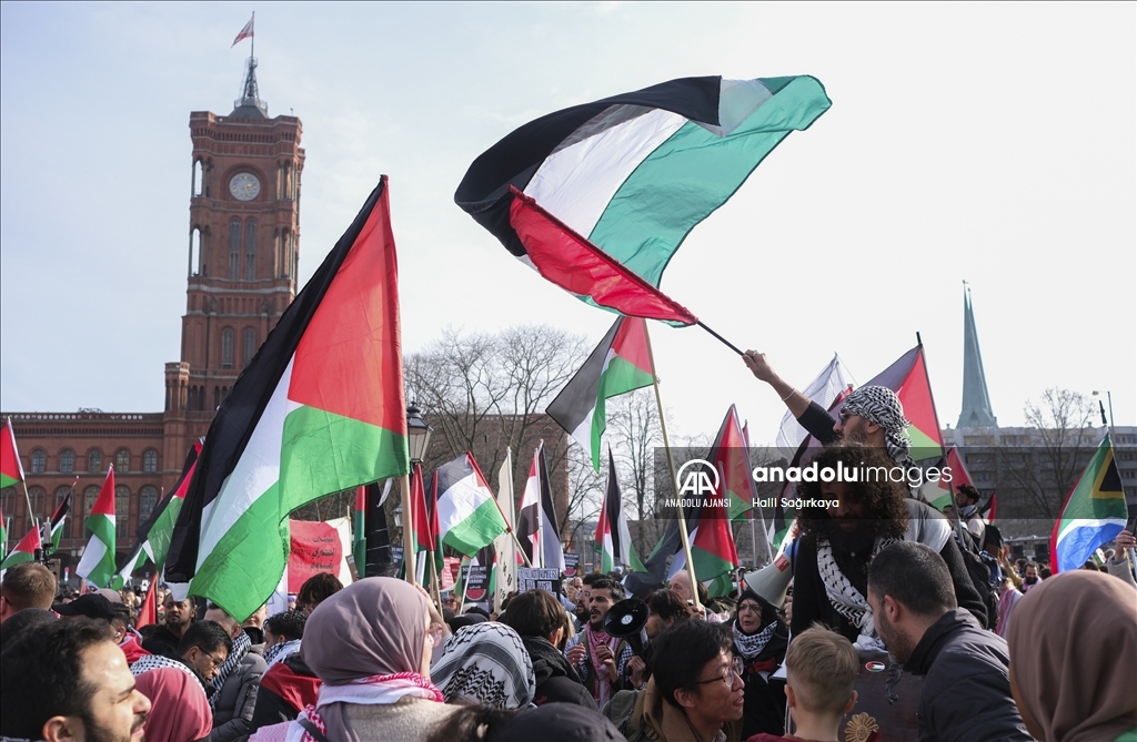 Almanya’nın başkenti Berlin’de Filistin’e destek gösterisi düzenlendi. Şehir merkezindeki Neptunbrunnen'de toplanan binlerce kişi, İsrail’in Gazze'ye yönelik saldırılarını protesto etti ve saldırıların durdurulmasını istedi. ( Halil Sağırkaya - Anadolu Ajansı )Halil Sağırkaya