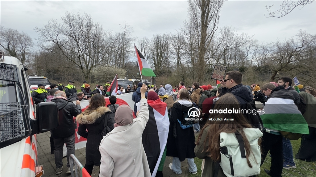 Hollanda'da polis, İsrail Büyükelçiliği önünde Filistin'e destek gösterisine izin vermedi