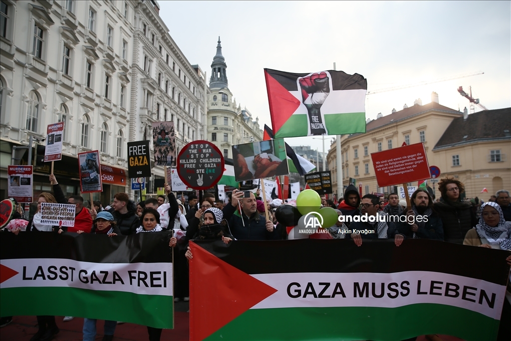 Avusturya'nın başkenti Viyana'da, 30 binden fazla Filistinlinin ölümüne yol açan İsrail'in Gazze'ye yönelik saldırılarını proteste etmek için yürüyüş düzenlendi. Başkentin önemli noktalarından İnsan Hakları Meydanı'nda toplanan göstericiler, Filistin bayraklarının yanı sıra, "Refah'tan elini çek", "Soykırıma hayır", "Şimdi ateşkes" yazılı pankartlar taşıdı. Gösteride, Filistin'in Viyana Büyükelçisi Salah Abdel Şafi bir konuşma yaptı. ( Aşkın Kıyağan - Anadolu Ajansı )Aşkın Kıyağan