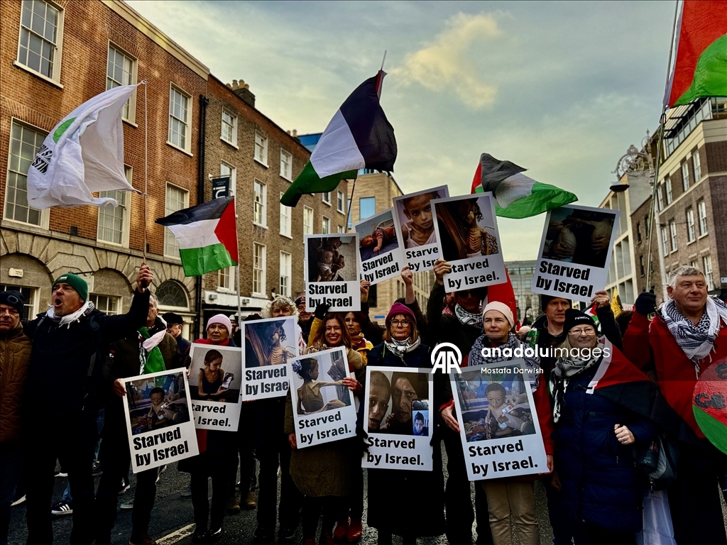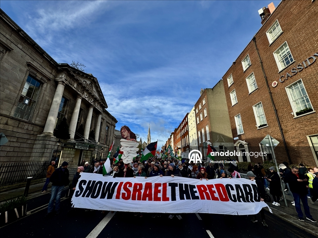 İrlanda'nın başkenti Dublin'de bir araya gelen göstericiler, Filistin'e destek yürüyüşü düzenledi.Filistin bayrakları, pankartlar ve dövizler taşıyan göstericiler, İrlanda hükümetini İsrail'e yaptırım uygulamaya çağırdı. ( Mostafa Darwish - Anadolu Ajansı )Mostafa Darwish