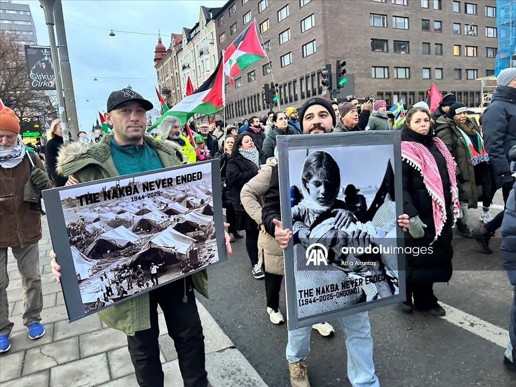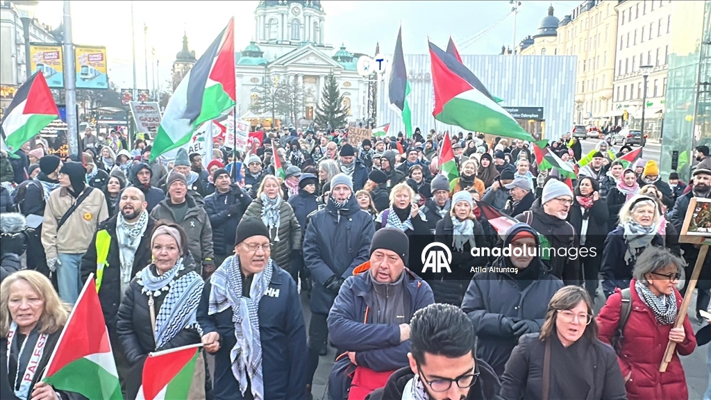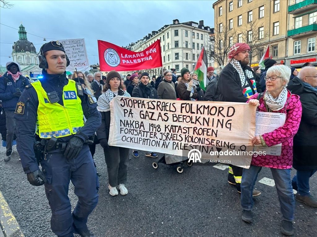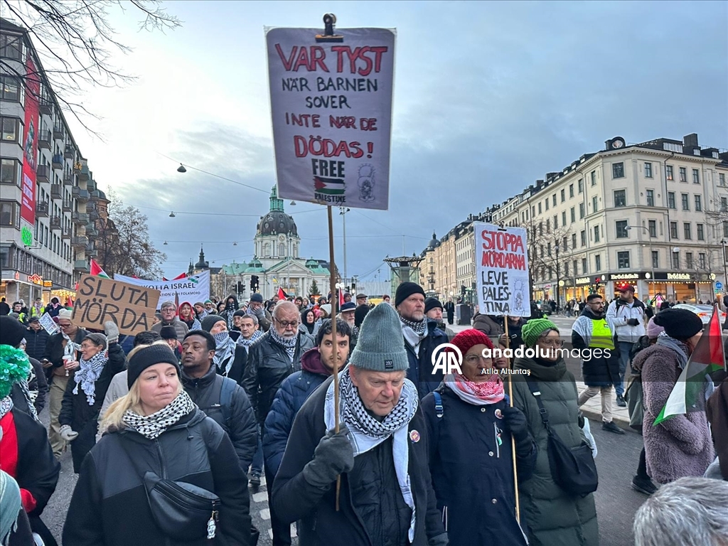 İsveç'in başkenti Stockholm'de yüzlerce kişi, ateşkes anlaşmasını ihlal eden İsrail'i, Gazze Şeridi'ne düzenlediği saldırılardan dolayı protesto etti. ( Atila Altuntaş - Anadolu Ajansı )Atila Altuntaş