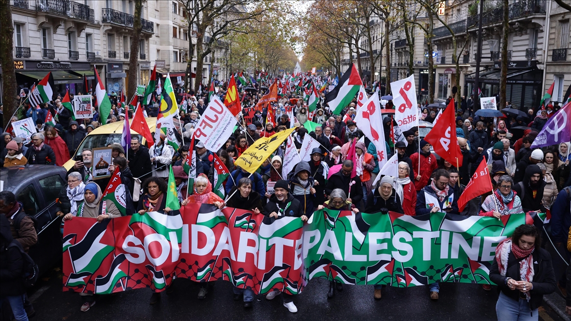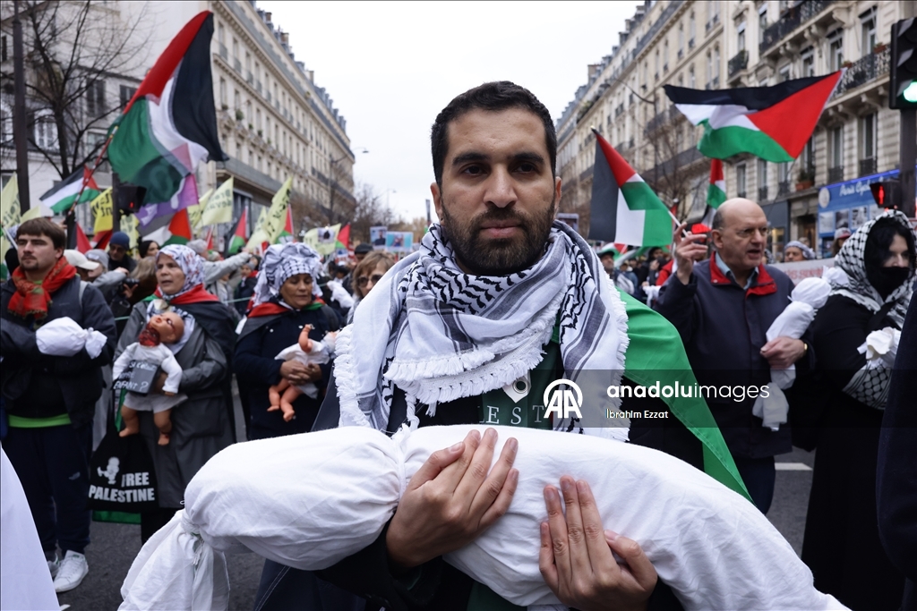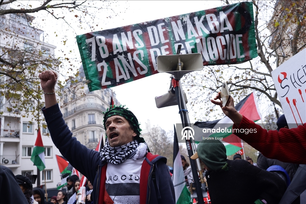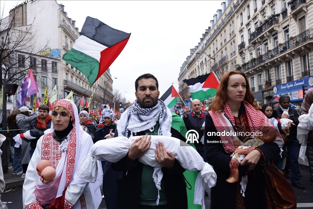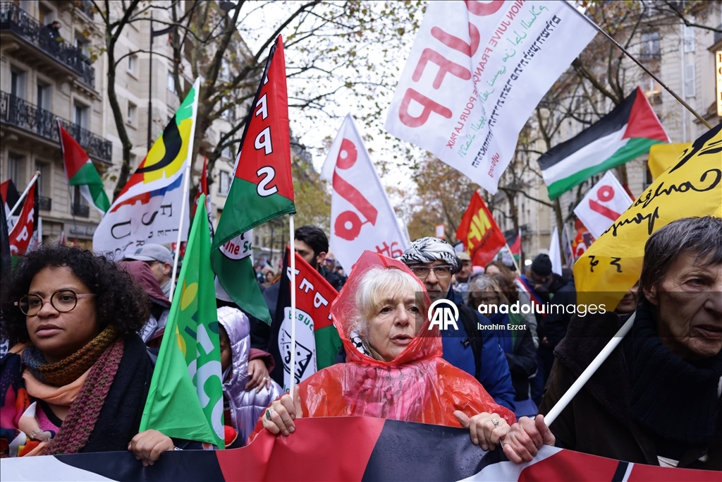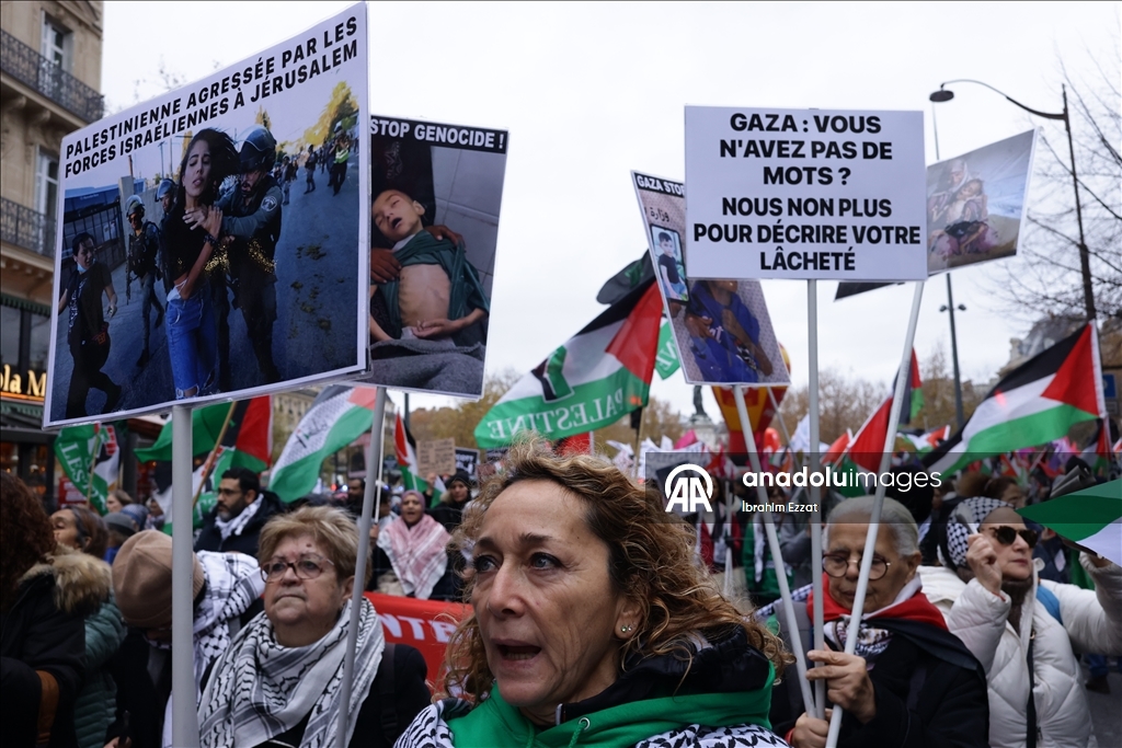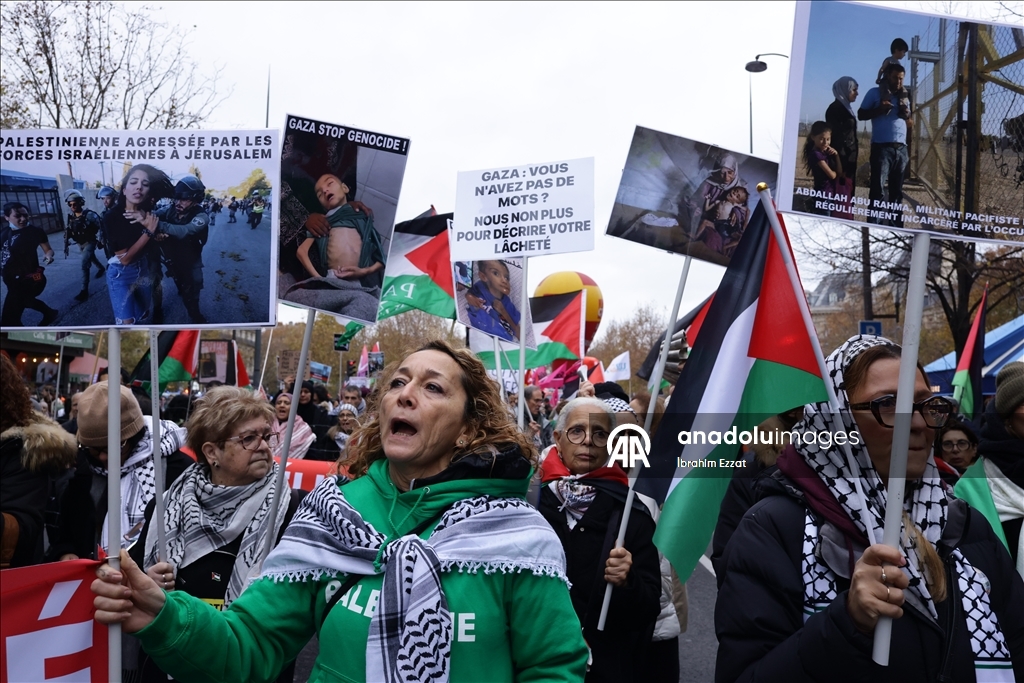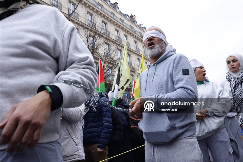 Uluslararası Filistin Halkıyla Dayanışma Günü kapsamında Paris’te bir araya gelen göstericiler, savaş ekonomisini protesto ederek özgür bir Filistin talebinde bulundu. ( İbrahim Ezzat - Anadolu Ajansı )İbrahim Ezzat