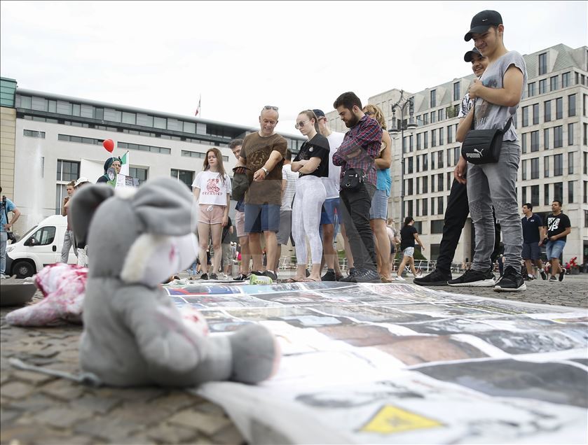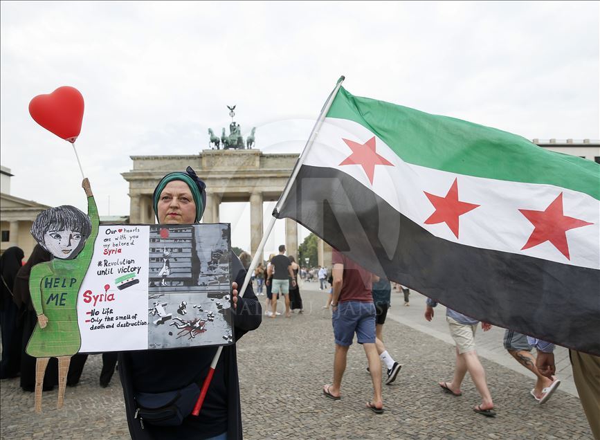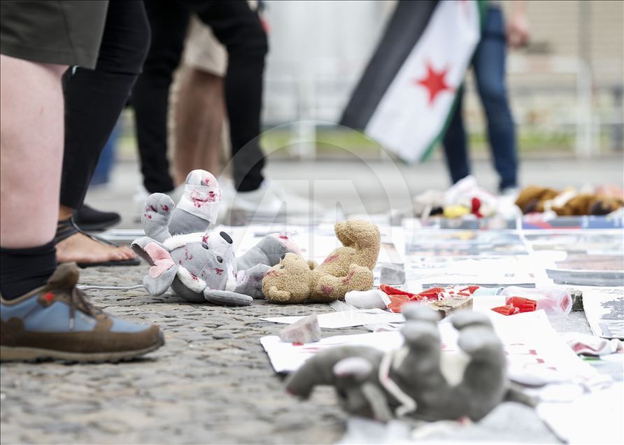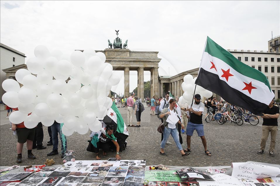 Avrupa'da bazı kentlerde, Beşşar Esed rejiminin İdlib Gerginliği Azaltma Bölgesi'nde yer alan Hama ve İdlib'e yönelik saldırıları protesto edildi. Almanya'nın başkenti Berlin'de tarihi Brandenburg kapısı önünde bir araya gelen yaklaşık 50 kişi, Suriye'deki saldırıları protesto etti. İdlib kentinde yaşanan sivil katliamlarının görsellerinin sergilendiği gösteride, ''Suriye'deki katliamı durdurun'', ''Çocuklar ölmesin'' sloganları atıldı. ( Abdülhamid Hoşbaş - Anadolu Ajansı )Abdülhamid Hoşbaş