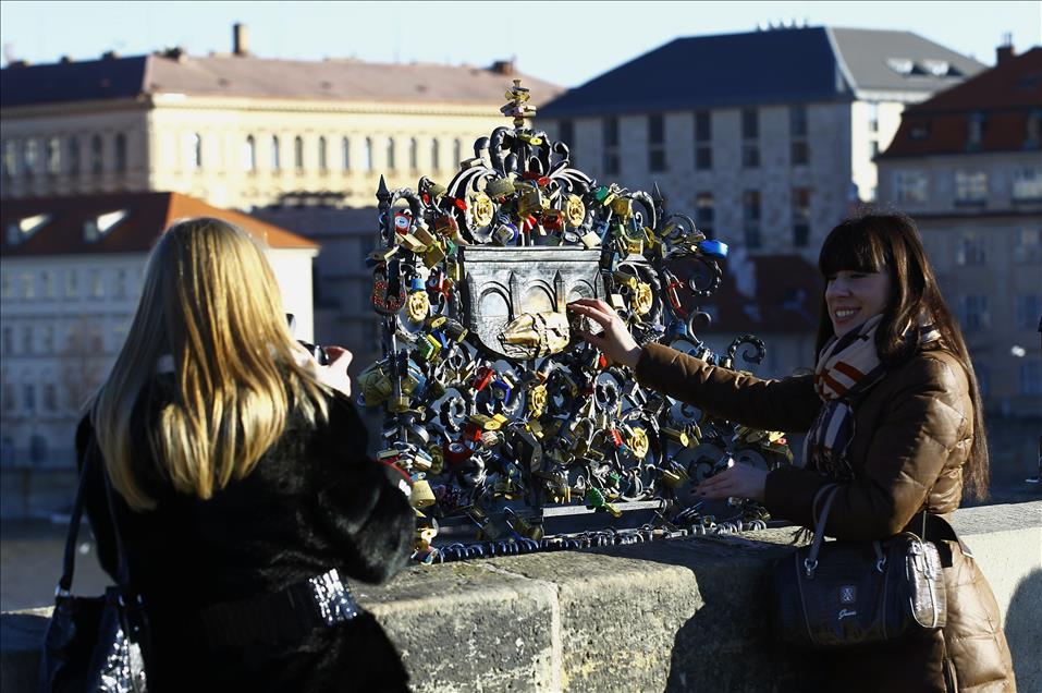 CEK CUMHURIYETI'NIN BASKENTI VE EN BUYUK SEHRI PRAG, AVRUPA'NIN 'MASAL SEHRI' OLARAK DA ADLANDIRILIYOR. YILDA YAKLASIK 15 MILYON TURISTIN GEZDIGI KENTIN SOKAKLARINDA ORTACAG DONEMINDE YASANDIGI HISSI DUYULUYOR. ''ALTIN SEHIR'', ''MASAL SEHRI'', ''SEHIRLERIN ANASI'' GIBI UNVANLARI DA BULUNAN BU TARIHI KENT, 1992 YILINDAN BU YANA UNESCO'NUN LISTESINDE YERALIYOR. PRAG'DA VLTAVA NEHRINI SUSLEYEN EN ONEMLI KOPRU ISE HER GUN DUNYANIN CESITLI YERLERINDEN TURISTLERI CEKEN CHARLES KOPRUSU. KOPRUDE YER ALAN VE SEVDIKLERIYLE HIC AYRILMAMALARINI SIMGELEYEN ASMA KILITLER TURISTLERIN ILGISINI CEKIYOR. (ANADOLU AJANSI - MURAT KAYNAK) (20130312)MURAT KAYNAK