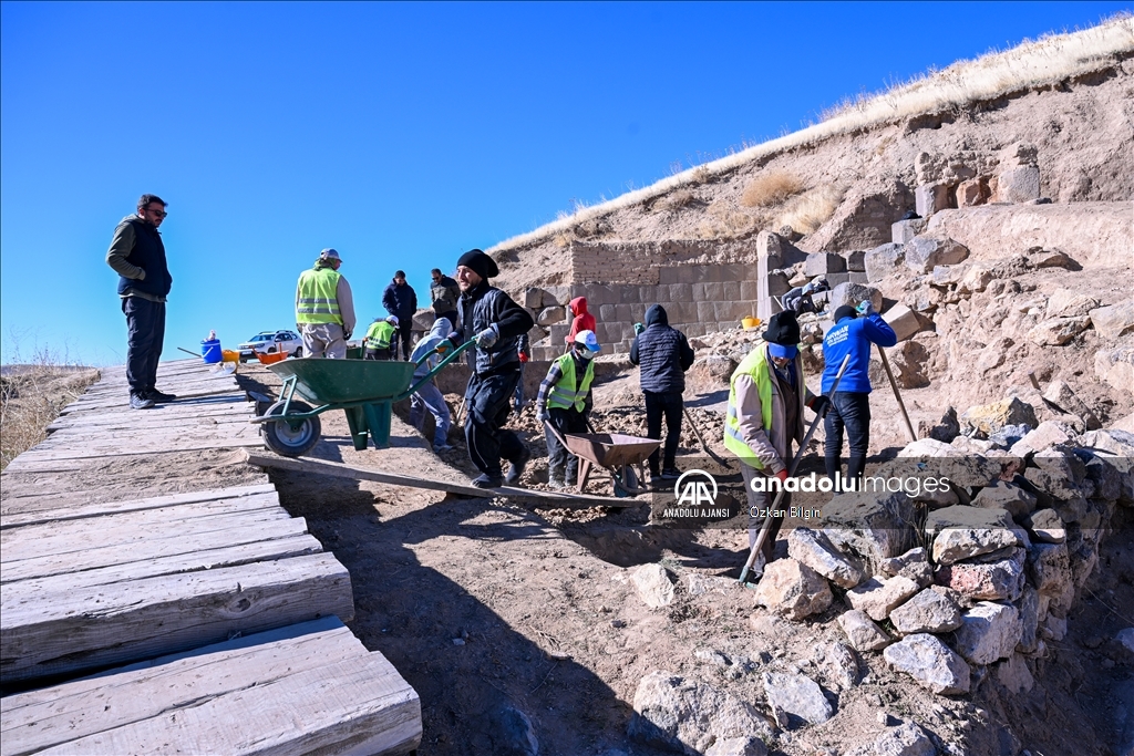 Urartu Krallığı'nın en görkemli yapılarından biri olan kalede, kazı ve restorasyon çalışmaları devam ediyor. (Özkan Bilgin - Anadolu Ajansı)Özkan Bilgin
