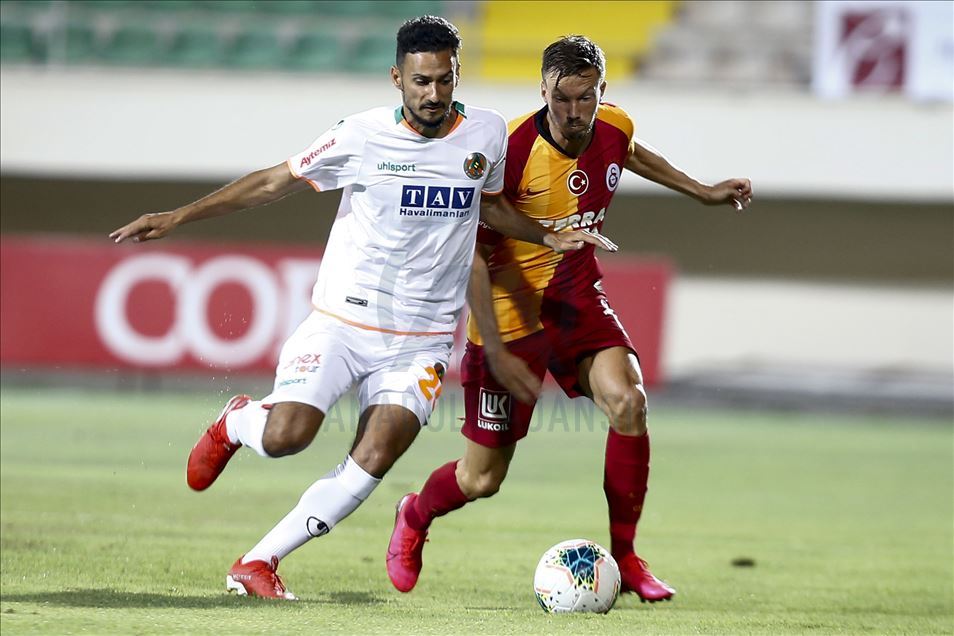 Süper Lig'de 31. haftasında Aytemiz Alanyaspor, Bahçeşehir Okulları Stadyumunda Galatasaray ile karşılaştı. Galatasaray oyuncusu Taylan Antalyalı (arkada) bir pozisyonda rakibiyle mücadele etti. ( Mustafa Çiftçi - Anadolu Ajansı )Mustafa Çiftçi