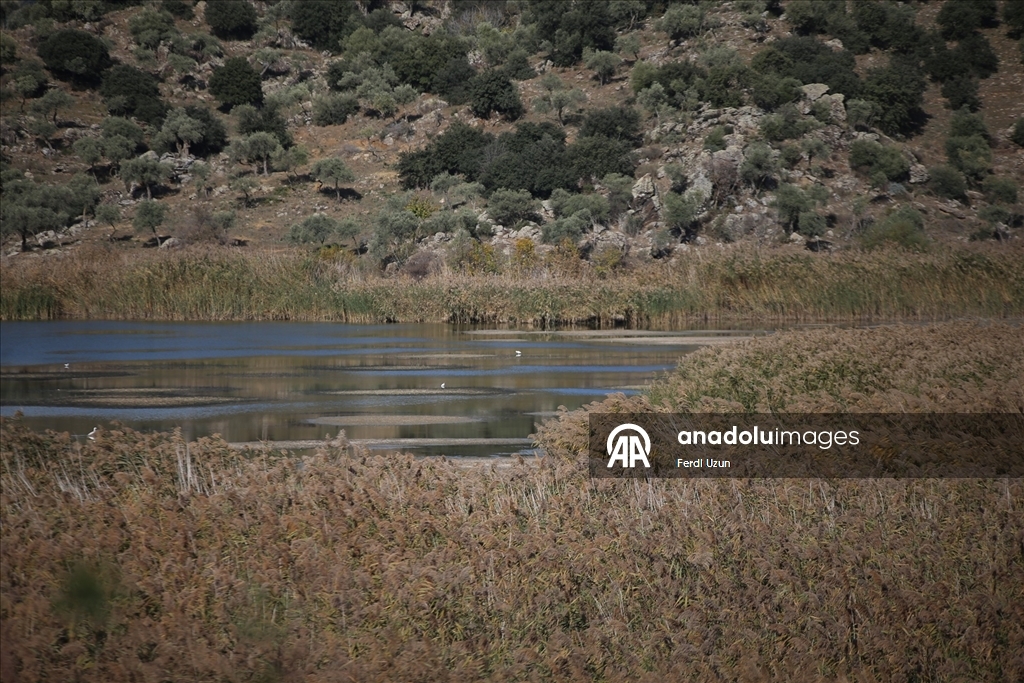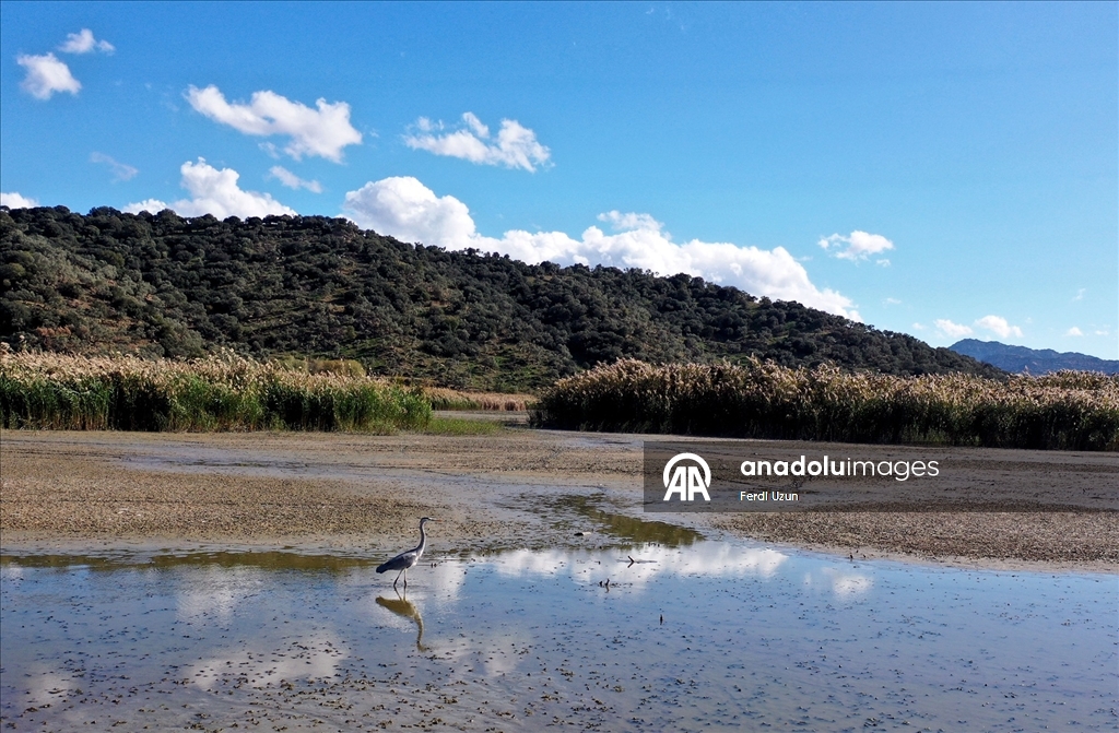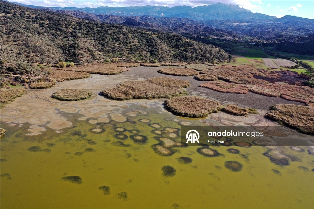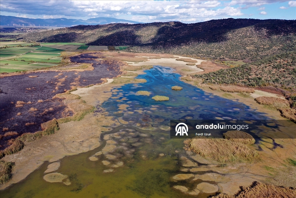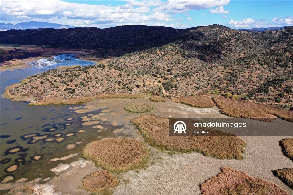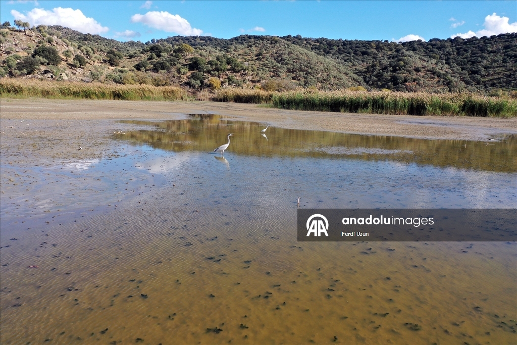 Aydın'ın Söke ilçesinde "Ulusal Öneme Haiz Sulak Alan" statüsünde bulunan Azap Gölü'nün çoğu kısmı kuraklık nedeniyle kurudu.