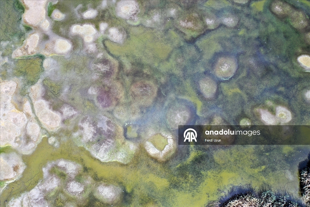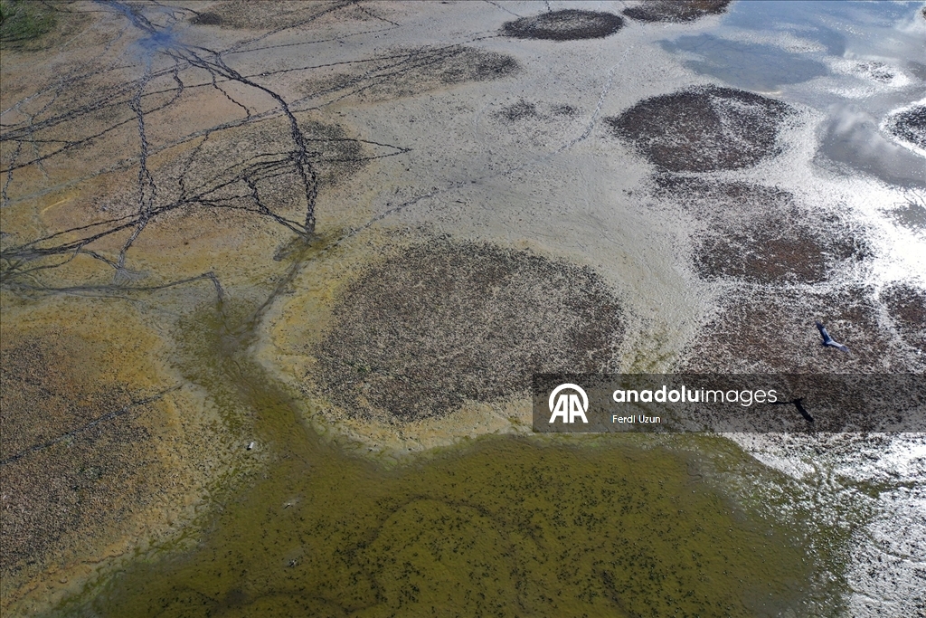 Azap Gölü'nde kuraklık nedeniyle sular çekildi