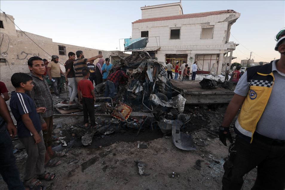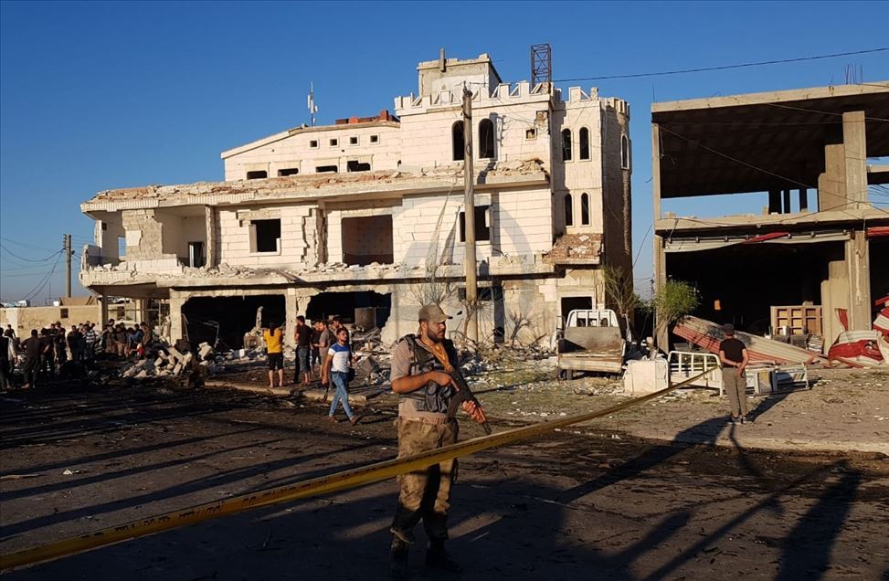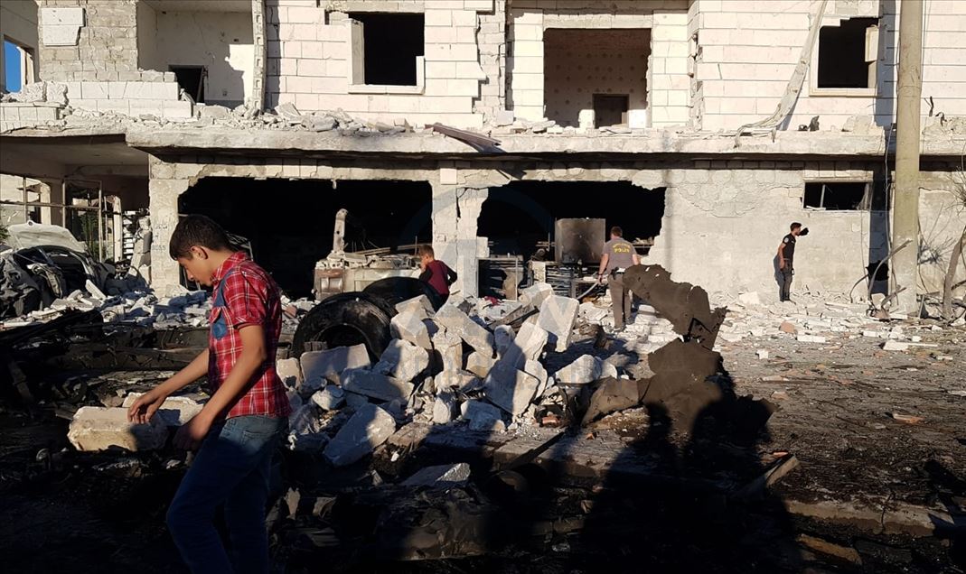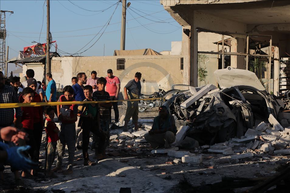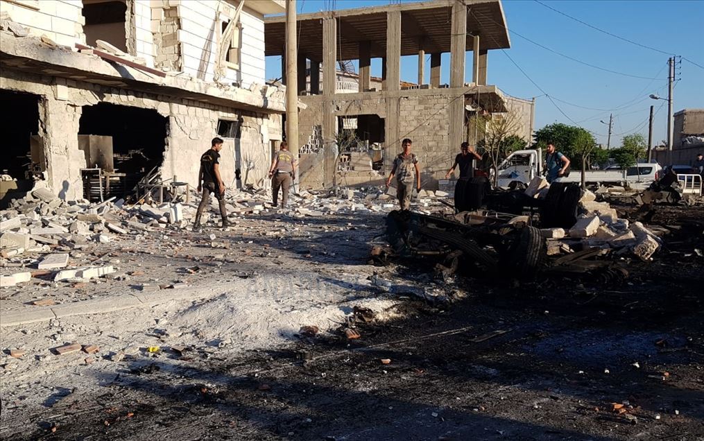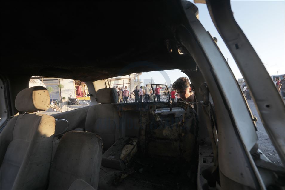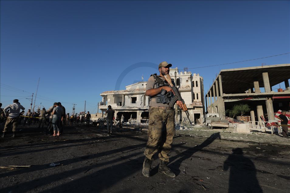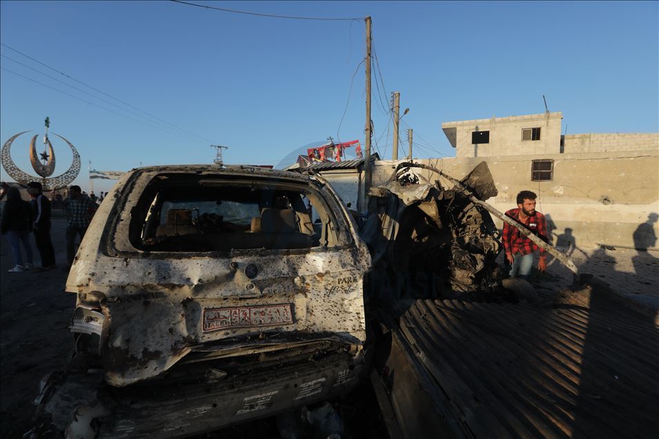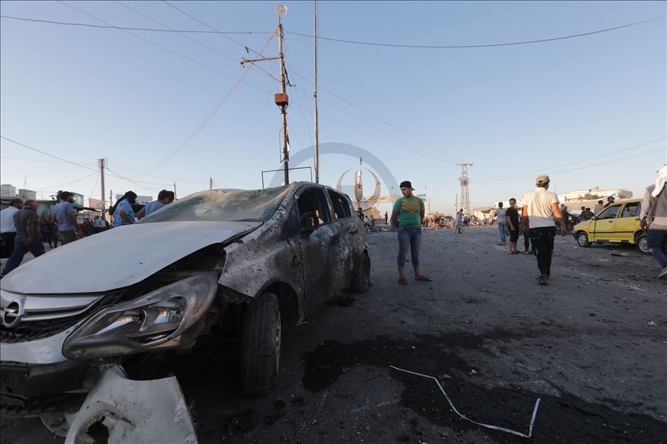 Suriye'nin kuzeyinde muhaliflerin kontrolündeki Azez ilçesinde, bomba yüklü araçla düzenlenen terör saldırısında 5 sivil öldü, 85 sivil yaralandı. Saldırı sonucu çevredeki bina ve araçlarda hasar oluştu. ( Bekir Kasım - Anadolu Ajansı )Bekir Kasım