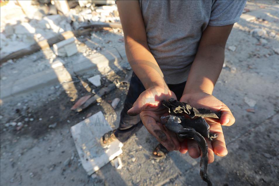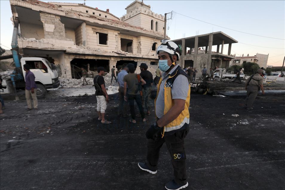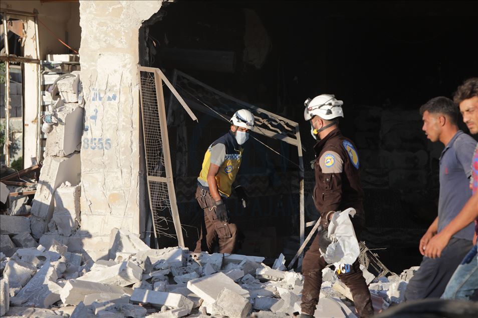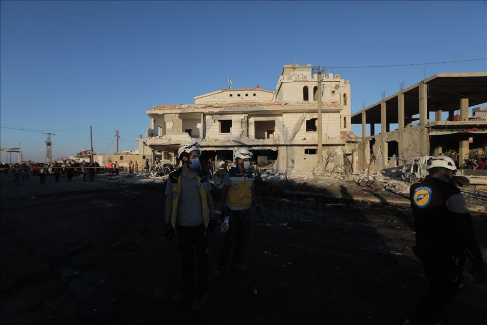 Suriye'nin kuzeyinde muhaliflerin kontrolündeki Azez ilçesinde, bomba yüklü araçla düzenlenen terör saldırısında 5 sivil öldü, 85 sivil yaralandı. Sivil savunma ekipleri, saldırıda yıkılan binaların enkazından arama kurtarma çalışmaları yaptı. ( Bekir Kasım - Anadolu Ajansı )Bekir Kasım