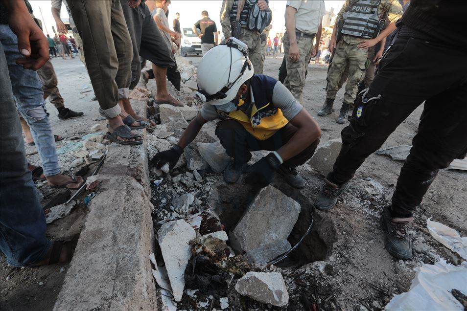 Suriye'nin kuzeyinde muhaliflerin kontrolündeki Azez ilçesinde, bomba yüklü araçla düzenlenen terör saldırısında 5 sivil öldü, 85 sivil yaralandı. Saldırı sonucu bölgede çukur oluştu. ( Bekir Kasım - Anadolu Ajansı )Bekir Kasım