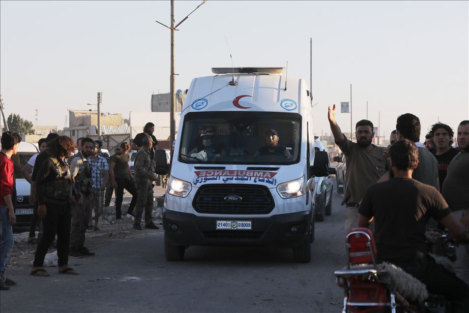 Suriye'nin kuzeyinde muhaliflerin kontrolündeki Azez ilçesinde, bomba yüklü araçla düzenlenen terör saldırısında 5 sivil öldü, 85 sivil yaralandı. Saldırın ardından bölgeye ambulanslar sevk edildi. ( Bekir Kasım - Anadolu Ajansı )Bekir Kasım