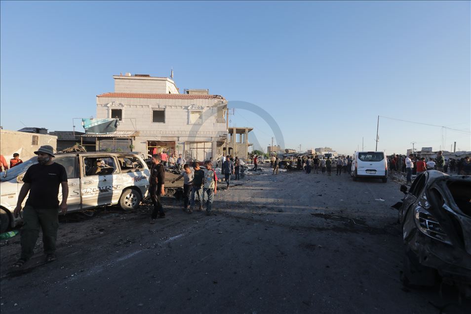 Suriye'nin kuzeyinde muhaliflerin kontrolündeki Azez ilçesinde, bomba yüklü araçla düzenlenen terör saldırısında 5 sivil öldü, 85 sivil yaralandı. Saldırı sonucu çevreye şarapnel parçaları saçıldı. ( Bekir Kasım - Anadolu Ajansı )Bekir Kasım