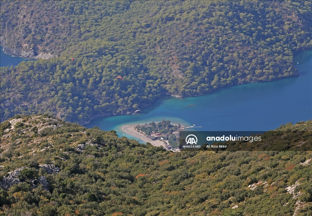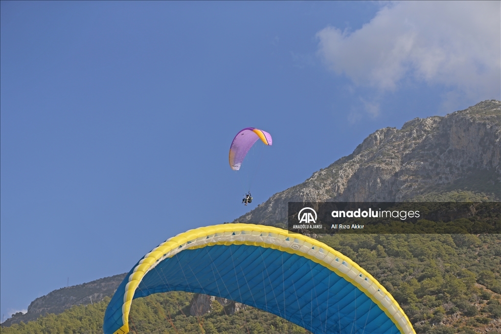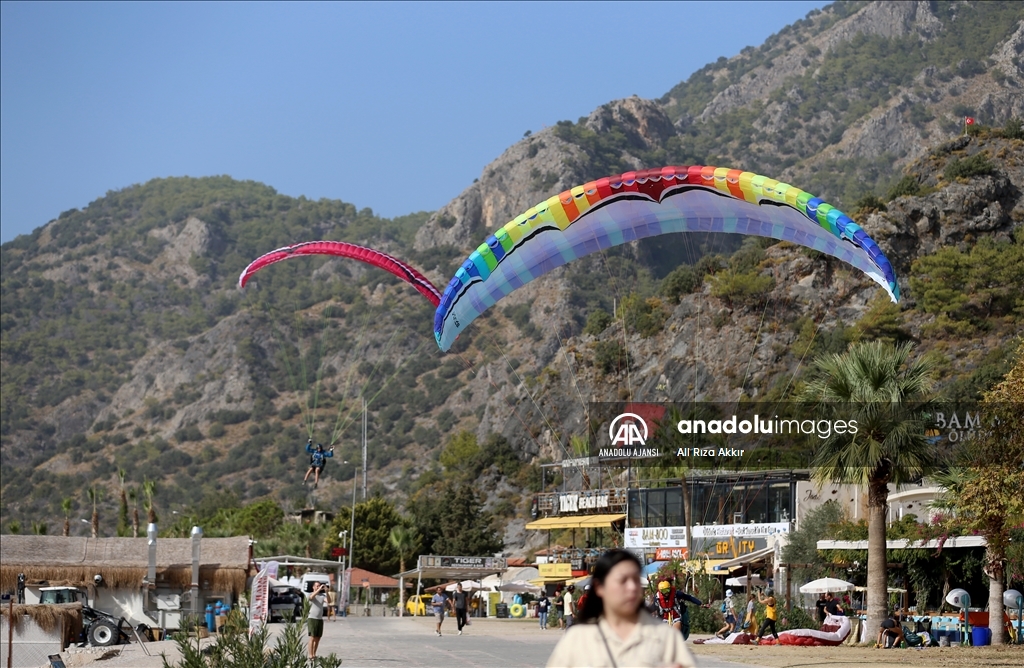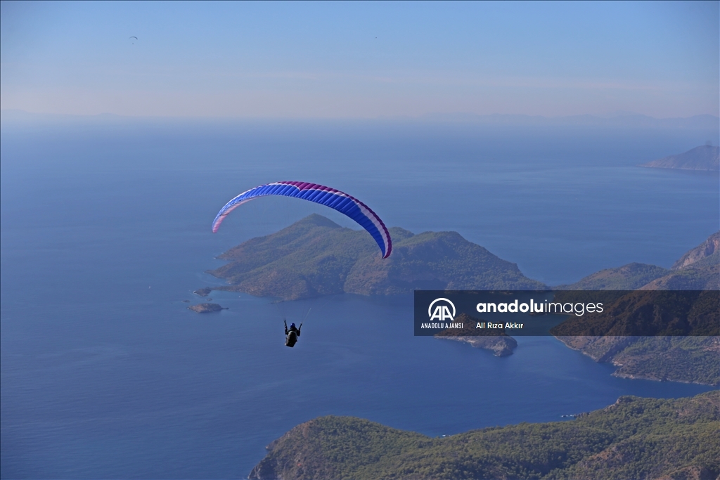 Muğla'nın Fethiye ilçesindeki Babadağ'dan ekim ayı sonu itibarıyla 224 bin yamaç paraşütü uçuşu gerçekleştirildi. Tatilciler, pilotların yaptığı akrobasi hareketleriyle yerden yaklaşık 2 bin metre yükseklikte heyecan dolu dakikalar yaşıyor. ( Ali Rıza Akkır - Anadolu Ajansı )Ali Rıza Akkır