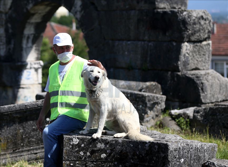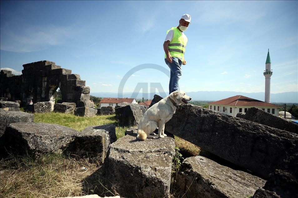 "Batı Karadeniz'in Efes'i" olarak adlandırılan Prusias ad Hypium Antik Kenti'nde, kazı alanından ayrılmayan ve "Badem" ismi verilen sokak köpeği, dört yıldır arkeologların maskotu haline geldi. ( Ömer Ürer - Anadolu Ajansı )Ömer Ürer