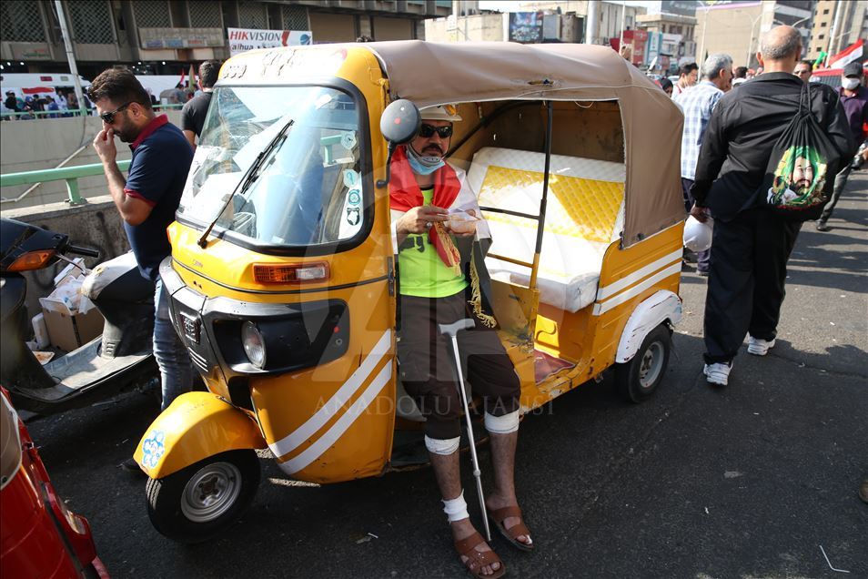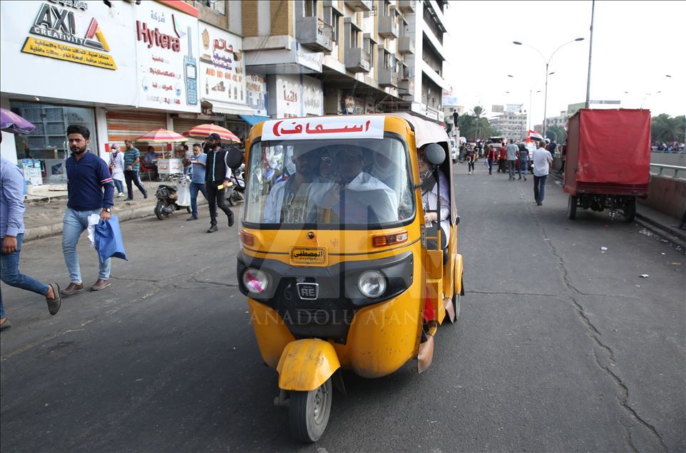 Irak'ın başkenti Bağdat'ta süren hükümet karşıtı gösterilerde ambulans görevini "tuk tuk" olarak da bilinen motor taksiler üstleniyor.