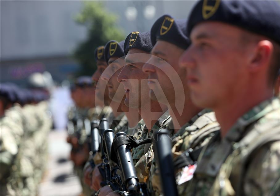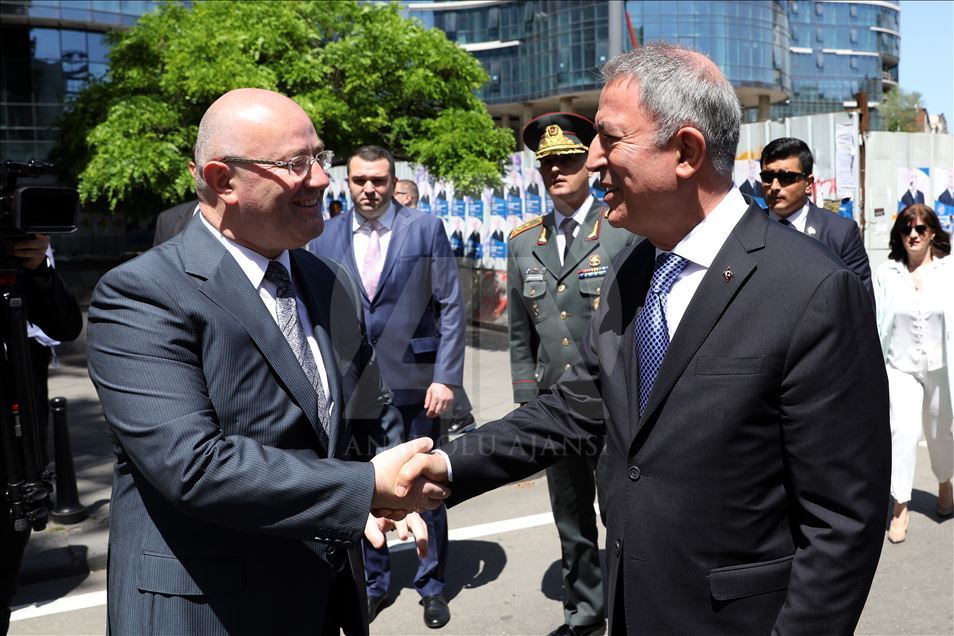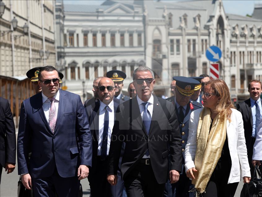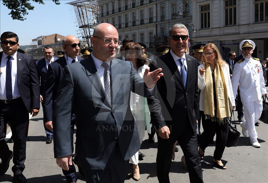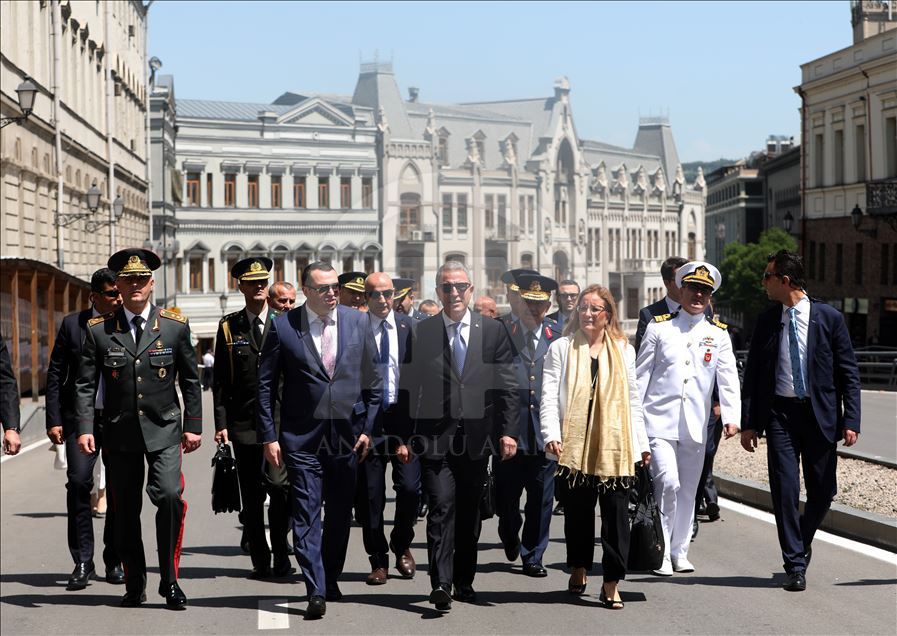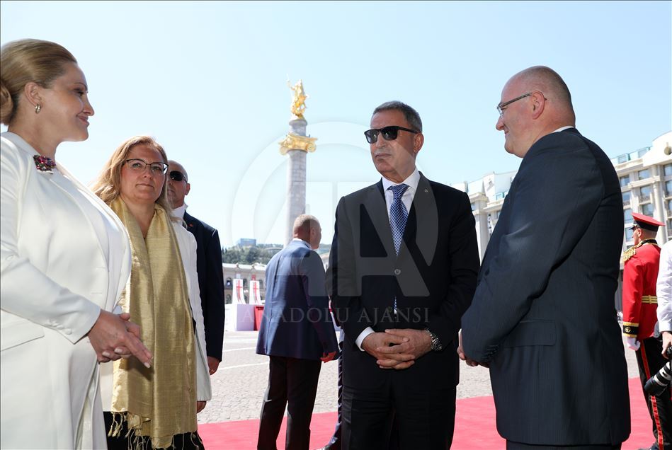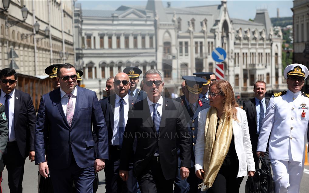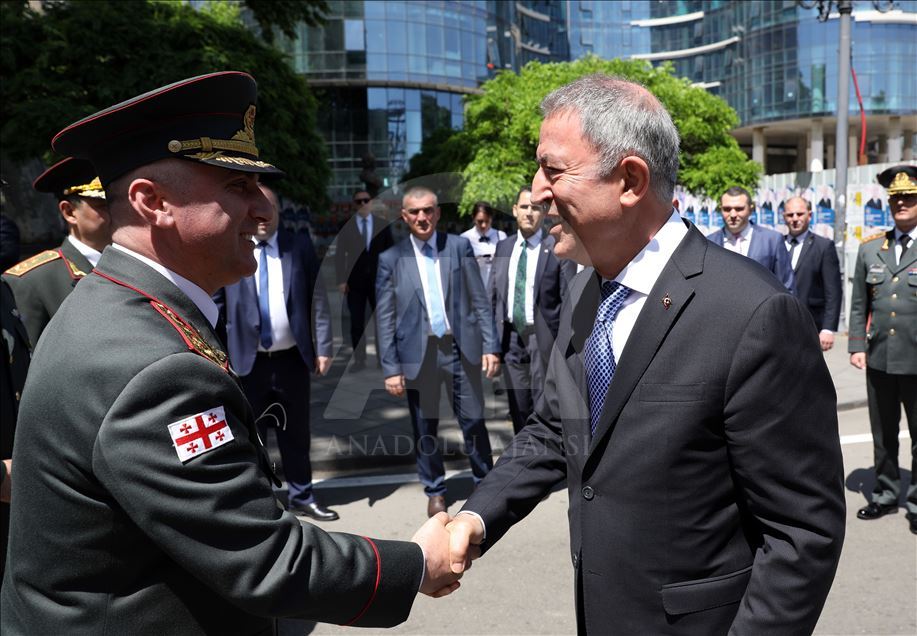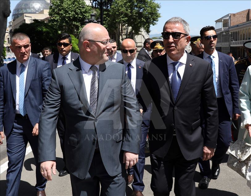 Milli Savunma Bakanı Hulusi Akar (solda), Bağımsızlık Meydanı'nda düzenlenen Gürcistan Cumhuriyeti'nin 101'inci kuruluş yıl dönümü törenlerine katıldı. ( Arif Akdoğan - Anadolu Ajansı )Arif Akdoğan