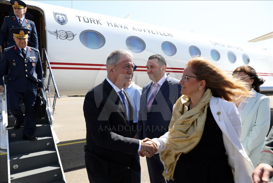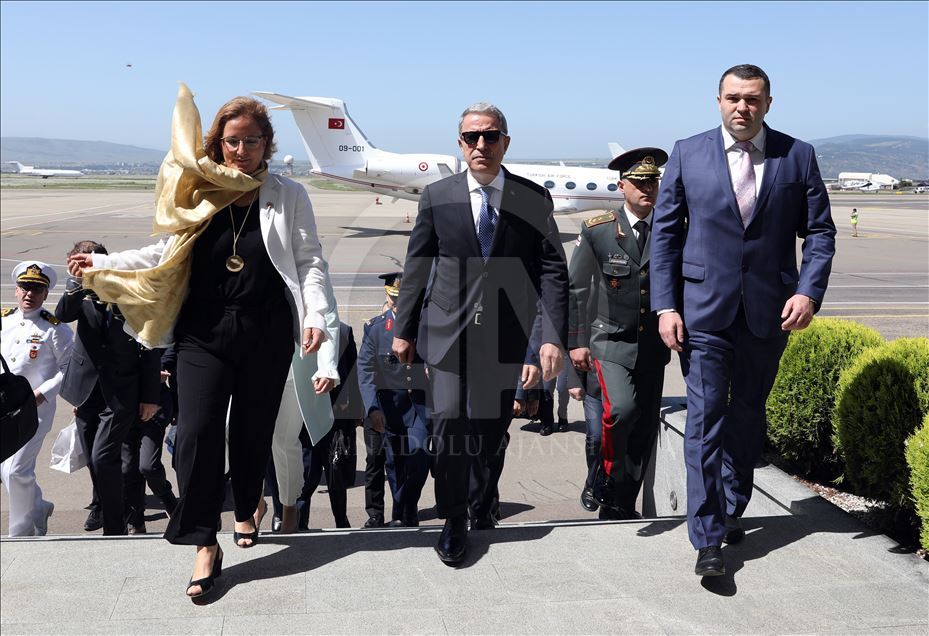 Milli Savunma Bakanı Hulusi Akar (ortada), Gürcistan Cumhuriyeti'nin 101'inci kuruluş yıl dönümü törenlerine katıldı. Akar'ı Gürcistan'a gelişinde Tiflis Havalimanı'nda Gürcistan Savunma Bakan Yardımcısı Giorgi Butkhuzi, Savunma Kuvvetleri Komutan Yardımcısı Tümgeneral Shalva Jabakhidze, Türkiye'nin Tiflis Büyükelçisi Fatma Ceren Yazgan ve diğer ilgililer karşıladı.