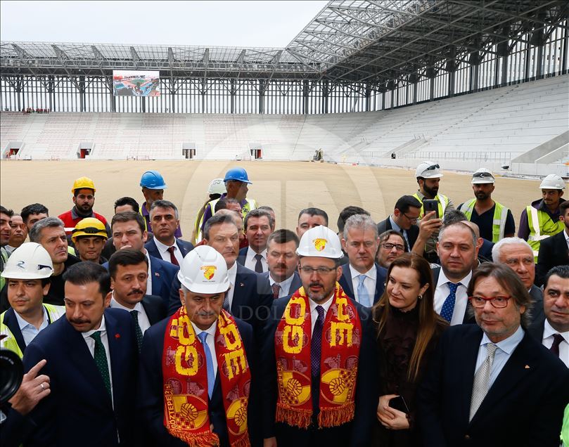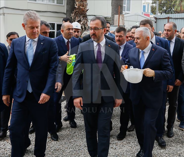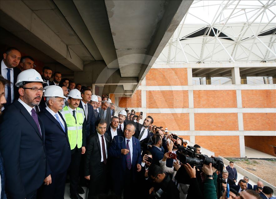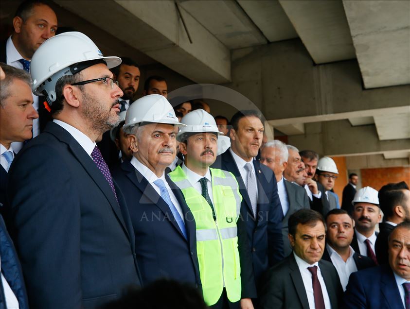 Gençlik ve Spor Bakanı Mehmet Muharrem Kasapoğlu ve AK Parti İzmir Milletvekili Binali Yıldırım, İzmir'de yapımı devam eden Alsancak Stadı ile Göztepe'nin stadı olan Gürsel Aksel Spor ve Sağlıklı Yaşam Merkezi'nde incelemelerde bulundu. ( Evren Atalay - Anadolu Ajansı )Evren Atalay