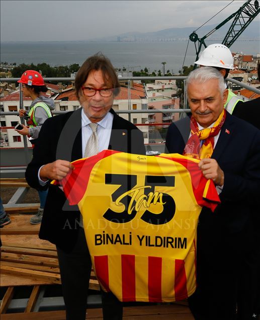 Gençlik ve Spor Bakanı Mehmet Muharrem Kasapoğlu ve AK Parti İzmir Milletvekili Binali Yıldırım, İzmir'de yapımı devam eden Alsancak Stadı ile Göztepe'nin stadı olan Gürsel Aksel Spor ve Sağlıklı Yaşam Merkezi'nde incelemelerde bulundu. Göztepe Kulübü Başkanı Mehmet Sepil (solda) Binali Yıldırım'a ismini taşıyan forma ve plaket hediye etti. ( Evren Atalay - Anadolu Ajansı )Evren Atalay