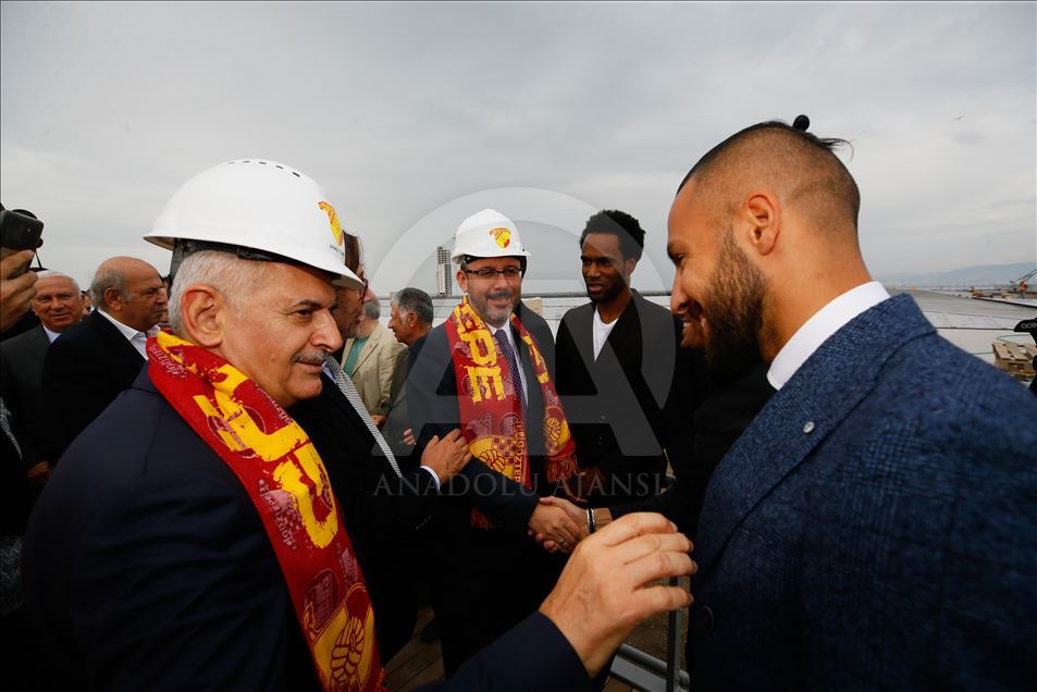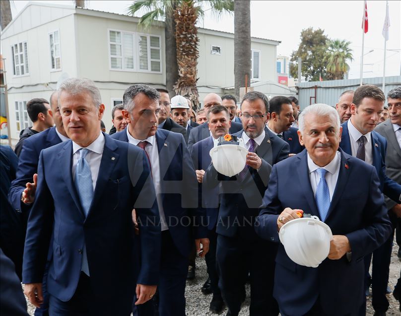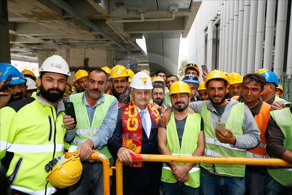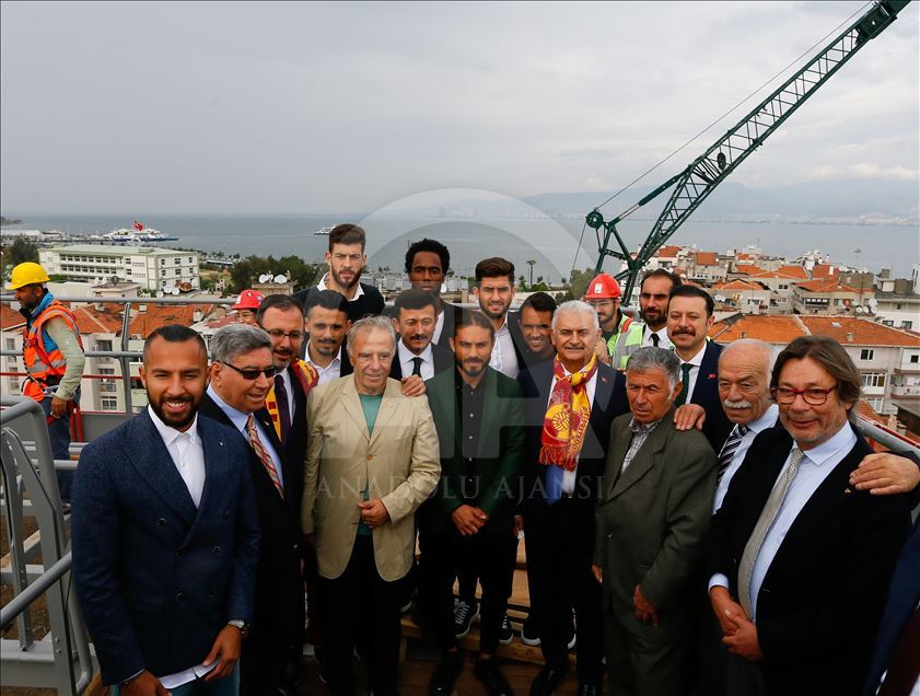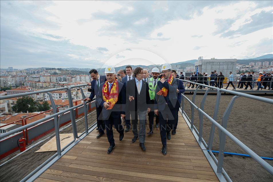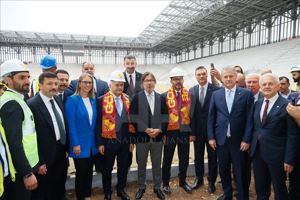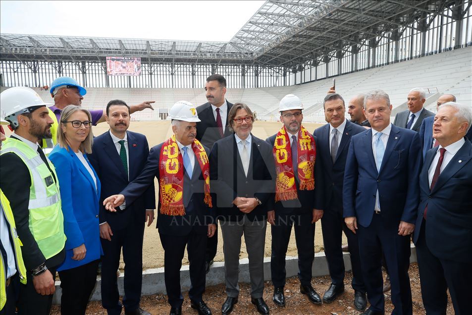 Gençlik ve Spor Bakanı Mehmet Muharrem Kasapoğlu ve AK Parti İzmir Milletvekili Binali Yıldırım, İzmir'de yapımı devam eden Alsancak Stadı ile Göztepe'nin stadı olan Gürsel Aksel Spor ve Sağlıklı Yaşam Merkezi'nde incelemelerde bulundu. AK Parti İzmir Milletvekili Binali Yıldırım, Gürsel Aksel Spor ve Sağlıklı Yaşam Merkezi'nde çalışan işçilerle fotoğraf çektirdi. ( Evren Atalay - Anadolu Ajansı )Evren Atalay