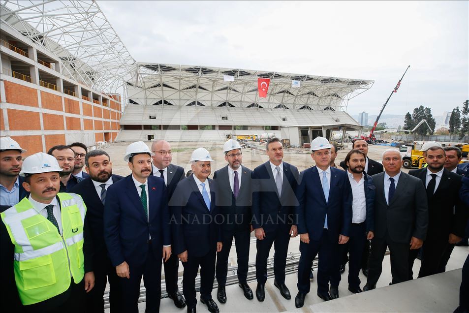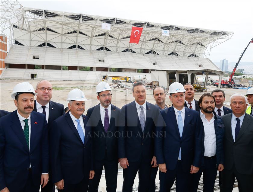 Gençlik ve Spor Bakanı Mehmet Muharrem Kasapoğlu (sol 4) ve AK Parti İzmir Milletvekili Binali Yıldırım (sol 3), İzmir'de yapımı devam eden Alsancak Stadı ile Göztepe'nin stadı olan Gürsel Aksel Spor ve Sağlıklı Yaşam Merkezi'nde incelemelerde bulundu. İncelemeye AK Parti Genel Başkan Yardımcısı Hamza Dağ (solda) ile AK Parti İzmir Milletvekilleri Alpay Özalan (sağ 7) Mahmut Atilla Kaya (sol 2) KATILDI. ( Evren Atalay - Anadolu Ajansı )Evren Atalay