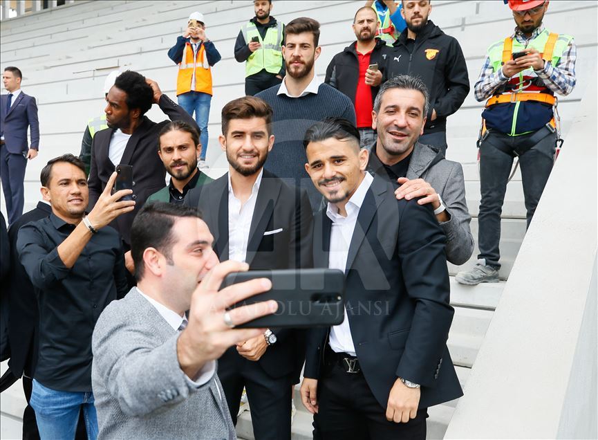 Gençlik ve Spor Bakanı Mehmet Muharrem Kasapoğlu ve AK Parti İzmir Milletvekili Binali Yıldırım, İzmir'de yapımı devam eden Alsancak Stadı ile Göztepe'nin stadı olan Gürsel Aksel Spor ve Sağlıklı Yaşam Merkezi'nde incelemelerde bulundu. İncelemeye katılan Göztepeli futbolcular hatıra fotoğrafı çektirdi. ( Evren Atalay - Anadolu Ajansı )Evren Atalay