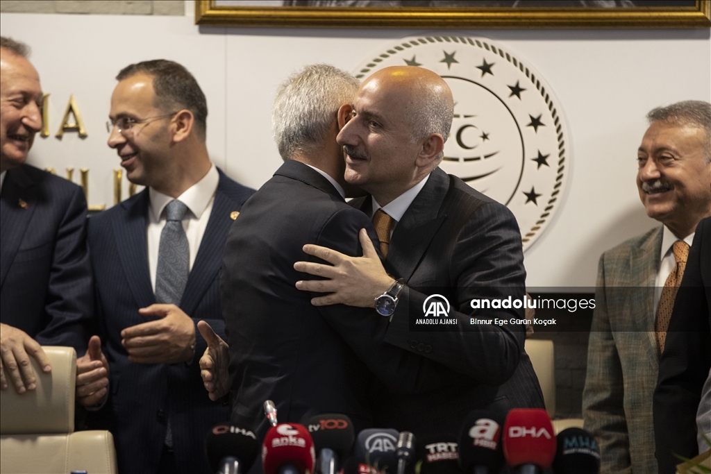 Ulaştırma ve Altyapı Bakanı Abdulkadir Uraloğlu (solda), görevi törenle Adil Karaismailoğlu’ndan (sağda) devraldı. ( Binnur Ege Gürün Koçak - Anadolu Ajansı )Binnur Ege Gürün Koçak