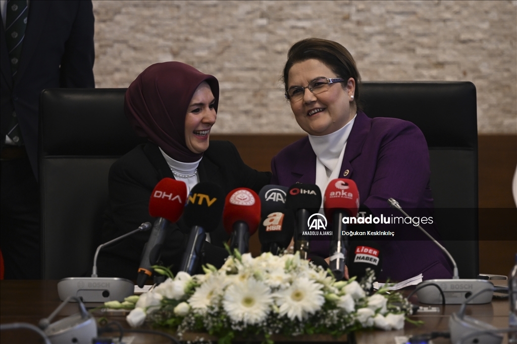 Aile ve Sosyal Hizmetler Bakanlığına getirilen Mahinur Özdemir Göktaş (solda), bakanlıkta düzenlenen törenle görevi Derya Yanık'tan (sağda) devraldı. ( Doğukan Keskinkılıç - Anadolu Ajansı )Doğukan Keskinkılıç