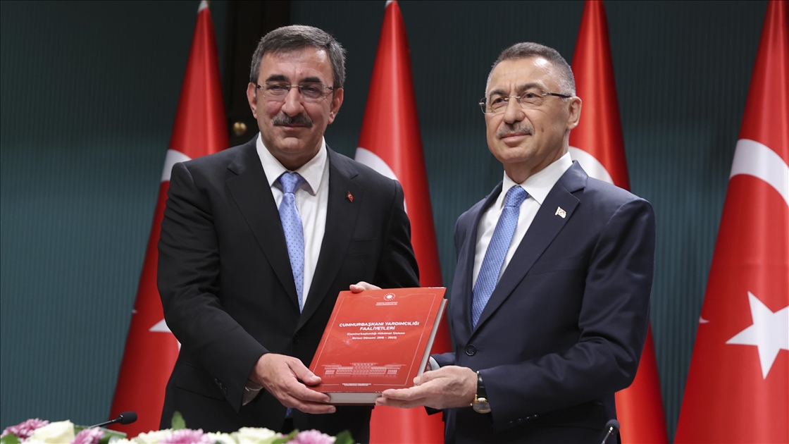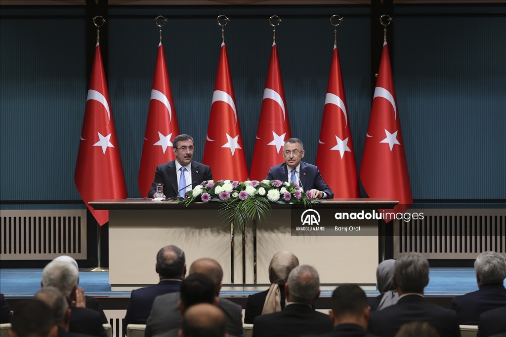 Cumhurbaşkanı Yardımcısı görevine getirilen Cevdet Yılmaz, Cumhurbaşkanlığı Külliyesi'nde düzenlenen törenle görevi Fuat Oktay'dan devraldı. ( Barış Oral - Anadolu Ajansı )Barış Oral