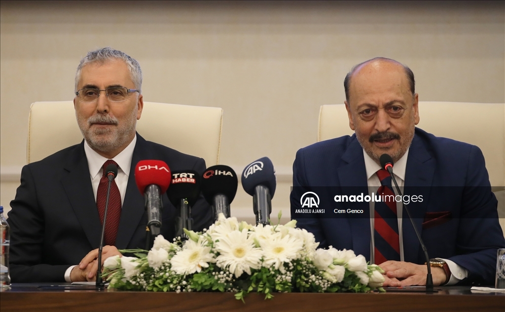 Çalışma ve Sosyal Güvenlik Bakanlığına getirilen Vedat Işıkhan (solda), bakanlıkta düzenlenen törenle görevi Vedat Bilgin'den (sağda) devraldı.
