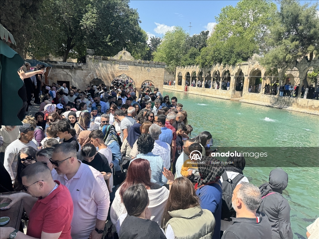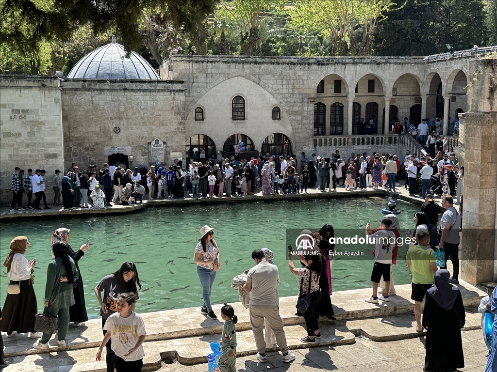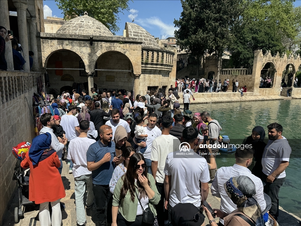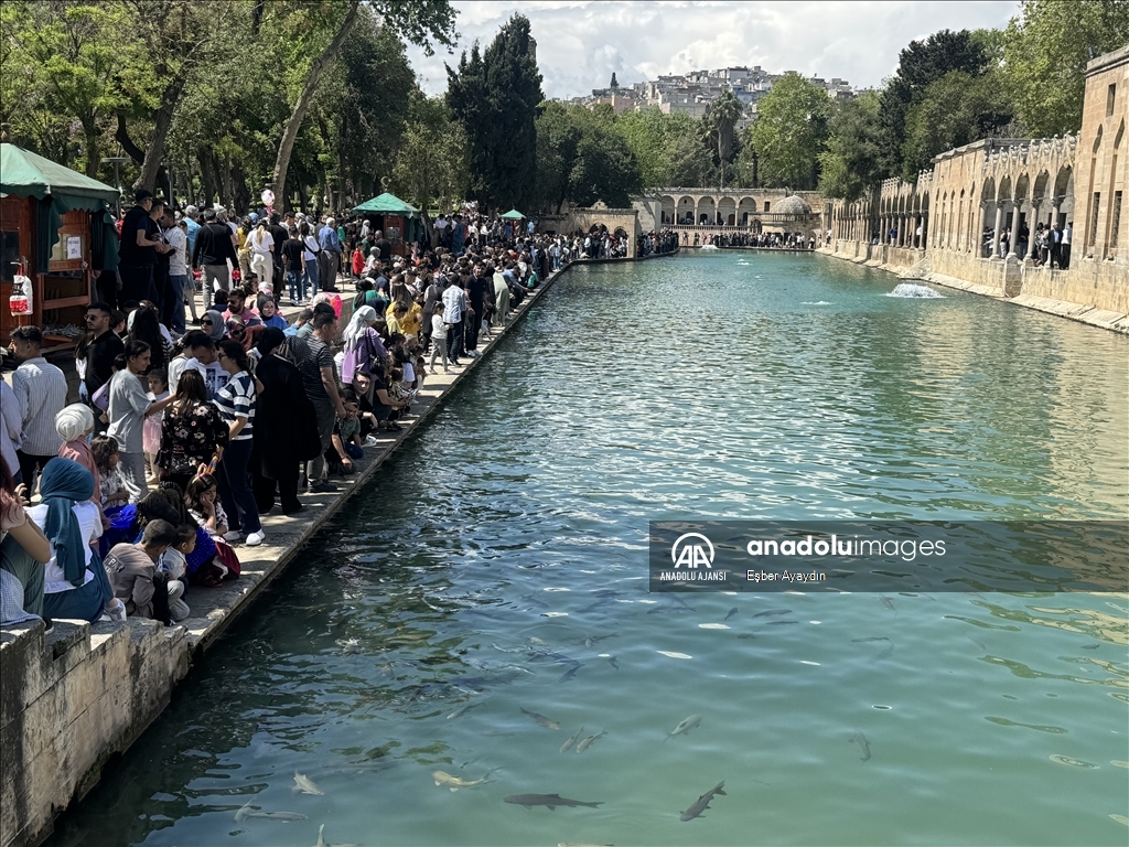 Güneydoğu Anadolu Bölgesi'nde turizmin önemli duraklarından Şanlıurfa'daki tarihi Balıklıgöl, 9 günlük Ramazan Bayramı tatilinde çok sayıda ziyaretçi çekti.