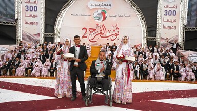 Gazze'de 150 çift düzenlenen toplu düğün töreniyle dünya evine girdi