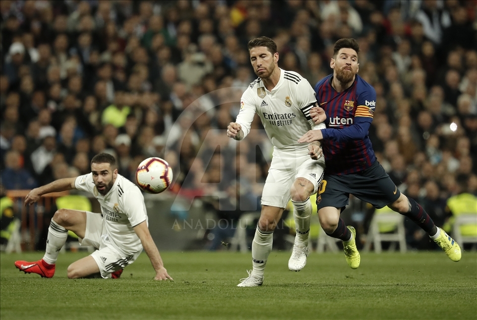 İspanya Birinci Futbol Ligi (La Liga) 26. hafta mücadelesinde, Real Madrid ile Barcelona takımları Madrid’deki Santiago Bernabeu Stadı’nda karşı karşıya geldi. Karşılaşmada, Barcelona takımının futbolcusu Lionel Messi (sağda), rakibi Sergio Ramos (solda) ile mücadele etti.