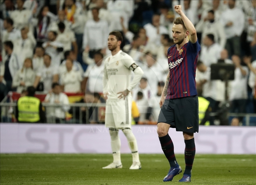 İspanya Birinci Futbol Ligi (La Liga) 26. hafta mücadelesinde, Real Madrid ile Barcelona takımları Madrid’deki Santiago Bernabeu Stadı’nda karşı karşıya geldi. Karşılaşmada, Barcelona takımının futbolcusu Ivan Rakitic (fotoğrafta), attığı golün ardından sevinç yaşadı. ( Burak Akbulut - Anadolu Ajansı )Burak Akbulut